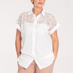 Krótka, prosta koszula w panterkę z rękawem 3/4 z mankietem. Dekolt w serek, zapinana z przodu na trzy guziki.