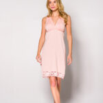 Zjawiskowa koszulka nocna Valerie w czerwono-czarnym kolorze. Propozycja o zgrabnym kroju, z głębokim V-dekoltem, który podkreśla zarówno koronkowa lamówka na brzegach, jak i czarny, nakrapiany tiul. Finezyjnie i z klasą. Dół gładki i luźny.