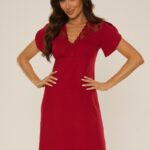 Zmysłowa, a zarazem komfortowa koszula nocna stworzona z myślą o kobiecym relaksie. Wykonana z miękkiej, przewiewnej tkaniny o gładkiej fakturze, zapewnia wygodę i swobodę ruchów przez całą noc. Model o długości do kolan zachwyca eleganckim dekoltem w kształcie litery V, zarówno z przodu, jak i z tyłu subtelnie podkreślonym delikatną koronką. Krótkie rękawy również wykończone koronką dodają całości romantycznego charakteru. Idealna propozycja na ciepłe noce lekka, kobieca i niezwykle przyjemna w noszeniu.