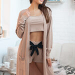 Urocza, lekko dopasowana do ciała koszulka nocna. Ramiączka z falbankami, uzupełnione o dwie słodkie kokardki. Czarująco i sexy.