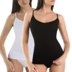 Damski podkoszulek wykonany z wysokiej jakości przewiewnego miłego i delikatnego włókna bambusowego w kolorze czarnym. Włókno bambusowe posiada właściwości antystatyczne i przeciwgrzybiczne. Podkoszulek jest bardzo miły i delikatny w dotyku i dla kobiecej skóry, posiada prosty klasyczny fason bez zdobień aplikacji i nadruków. Koszulka jest mocniej dopasowana do sylwetki, podkreśla jej zalety. Głębokie półokrągłe wykończenie z przodu wokół szyi eksponuje dekolt i podkreśla kobiecy biust. Długość podkoszulka sięga do połowy bioder i jest delikatnie wykończona. Podkoszulek jest bardzo komfortowy i wygodny w codziennym użytkowaniu. Ciało nie poci się dzięki naturalnemu bambusowi, który gwarantuje utrzymanie świeżości w trakcie noszenia. Podkoszulka damska sprawdzi się również w trakcie uprawiania różnego rodzaju sportu, na przykład do biegania zestawiona z legginsami, czy krótkimi spodenkami. Również klasyczny fason koszulki skomponuje się z klasycznymi marynarkami. Gładki podkoszulek bambusowy powinien znaleźć się w garderobie każdej współczesnej kobiety lubiącej dobrze wyglądać i kładącej nacisk na wygodę, jest bazą do różnych stylizacji.