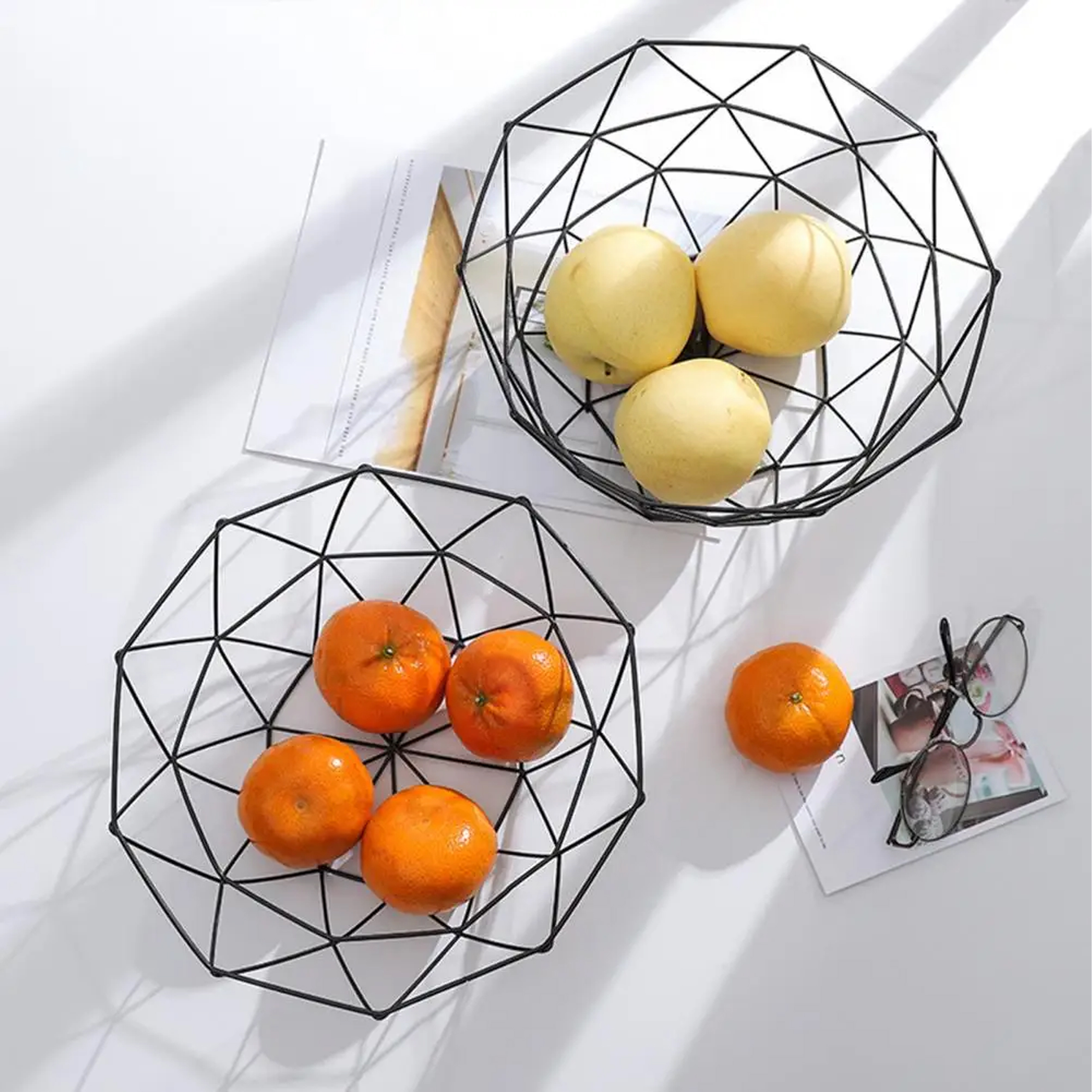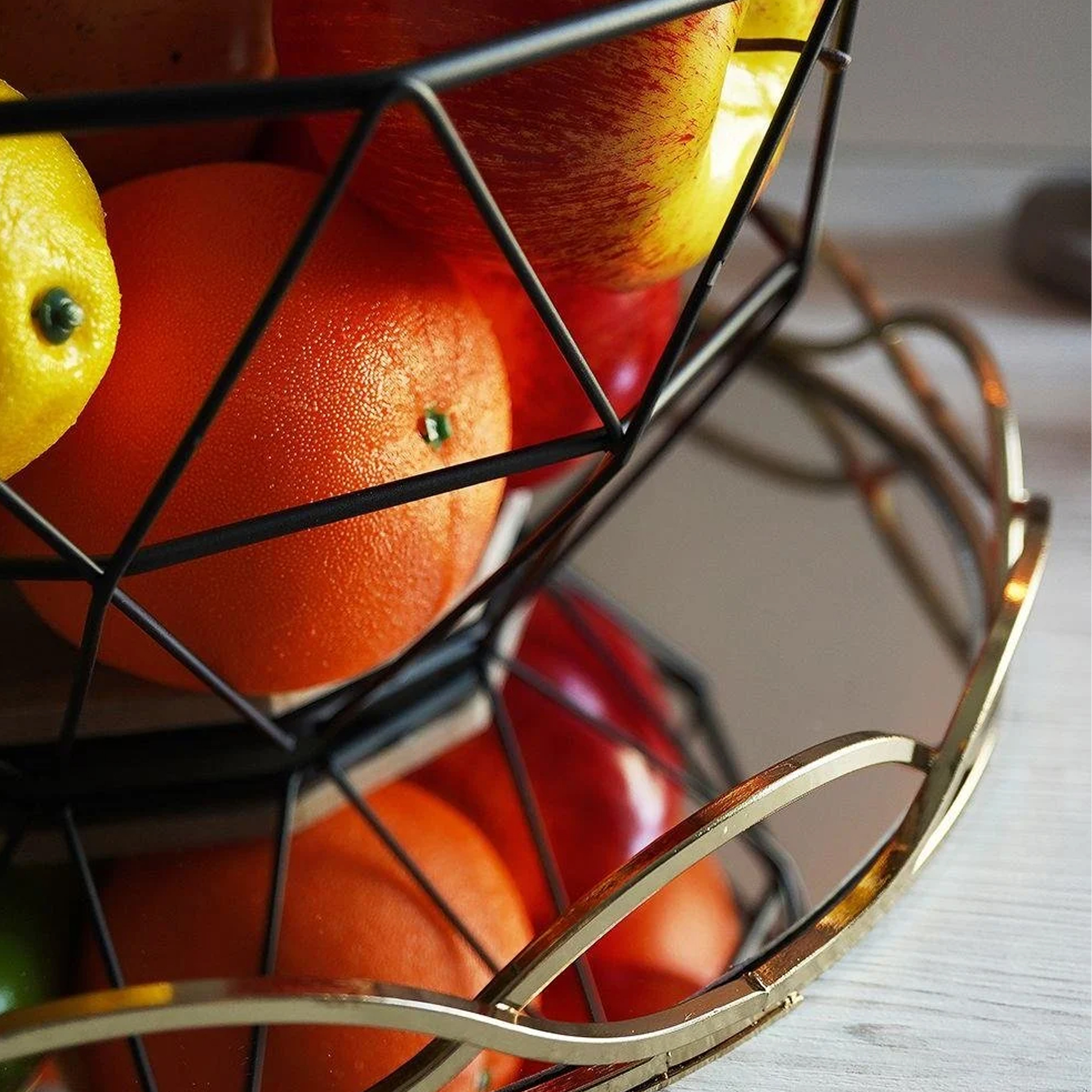 Geometryczny koszyk na warzywa i owoce to idealny dodatek do wnętrz w stylu loftowym, industrialnym, oraz glamour. Dzięki niemu w piękny sposób wyeksponujesz owoce i warzywa na stole. Jest to również dekoracja, która wpasuje się we wnętrze o bardziej klasycznym wydźwięku, przełamując je i dodając mu nuty teraźniejszych trendów.