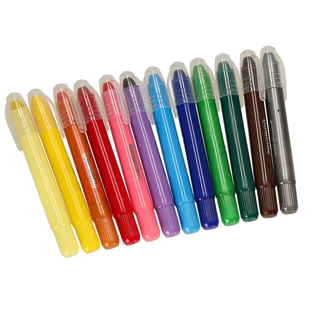 Świetne kredki w sztyfcie marki BAMBINO. Przypadną do gustu każdego dziecka. Plastikowa obudowa chroni dłonie przed zabrudzeniem. W zestawie 12 kolorów kredek, w tym 3 kolory metaliczne i 3 neonowe. Dł. kredki: 12cm. Wym. opakowania: 18,5×15,5×1,7cm.