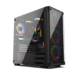 Obudowa Krux Mirror wyróżnia się minimalistycznym designem. Panel ze szkła hartowanego z efektem lustra na froncie, będzie robił imponujące wrażenie. Cztery wentylatory z podświetleniem RGB zapewniają optymalny obieg powietrza. Obudowa zmieści kartę graficzną o długości do 320 mm, chłodzenie procesora o wysokości 162 mm, a także chłodzenie AIO 240 mm. Dwie zatoki na 3,5” dyski HDD oraz 4 miejsca na 2,5″ dyski SSD. USB 3.0 oraz 2 x USB 2.0 znajdują się z przodu wraz z audio bezpośrednio pod ręką na górze obudowy. Przed dostawaniem się zabrudzeń do wnętrza komputera chroni zestaw filtrów przeciwkurzowych.