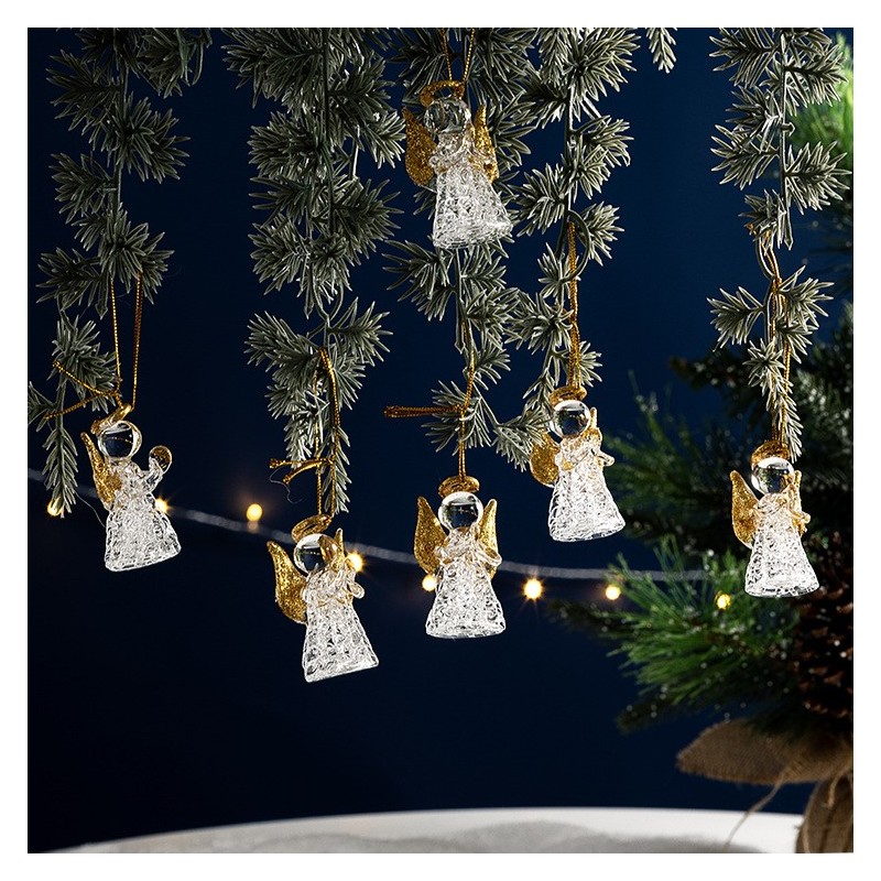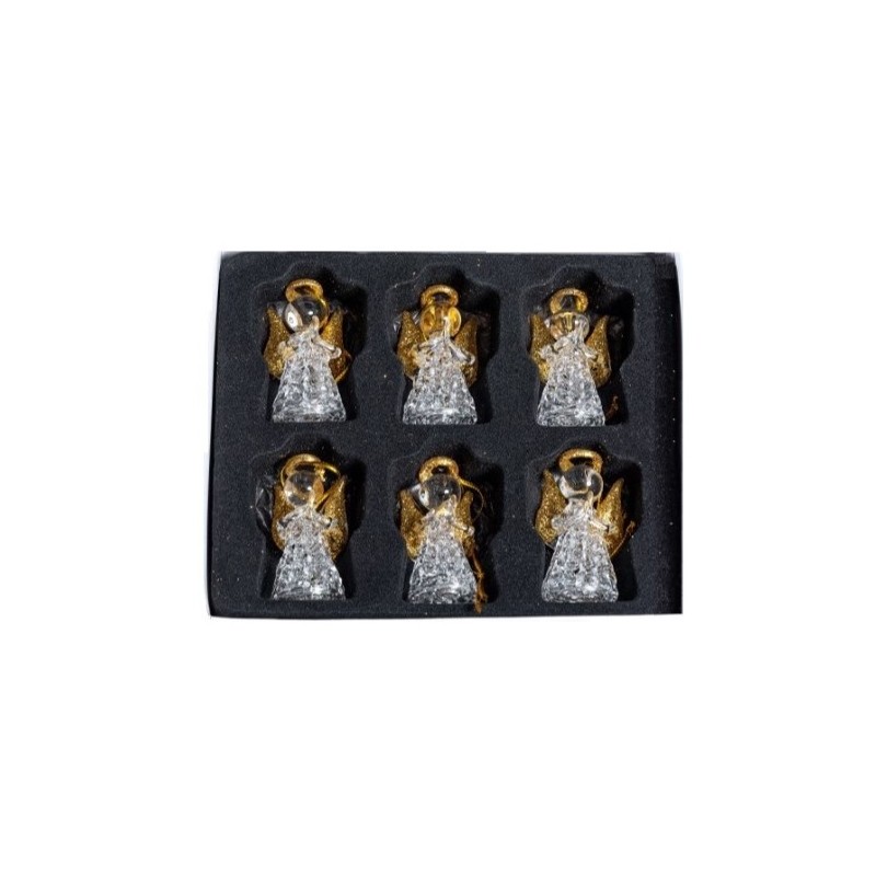 Kryształowe Aniołki wiszące złote, bombki zestaw 6szt w pudełku Boże Narodzenie BSN21