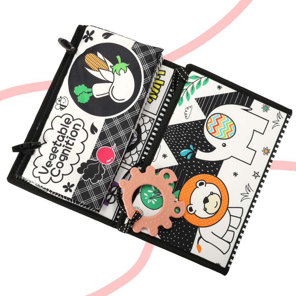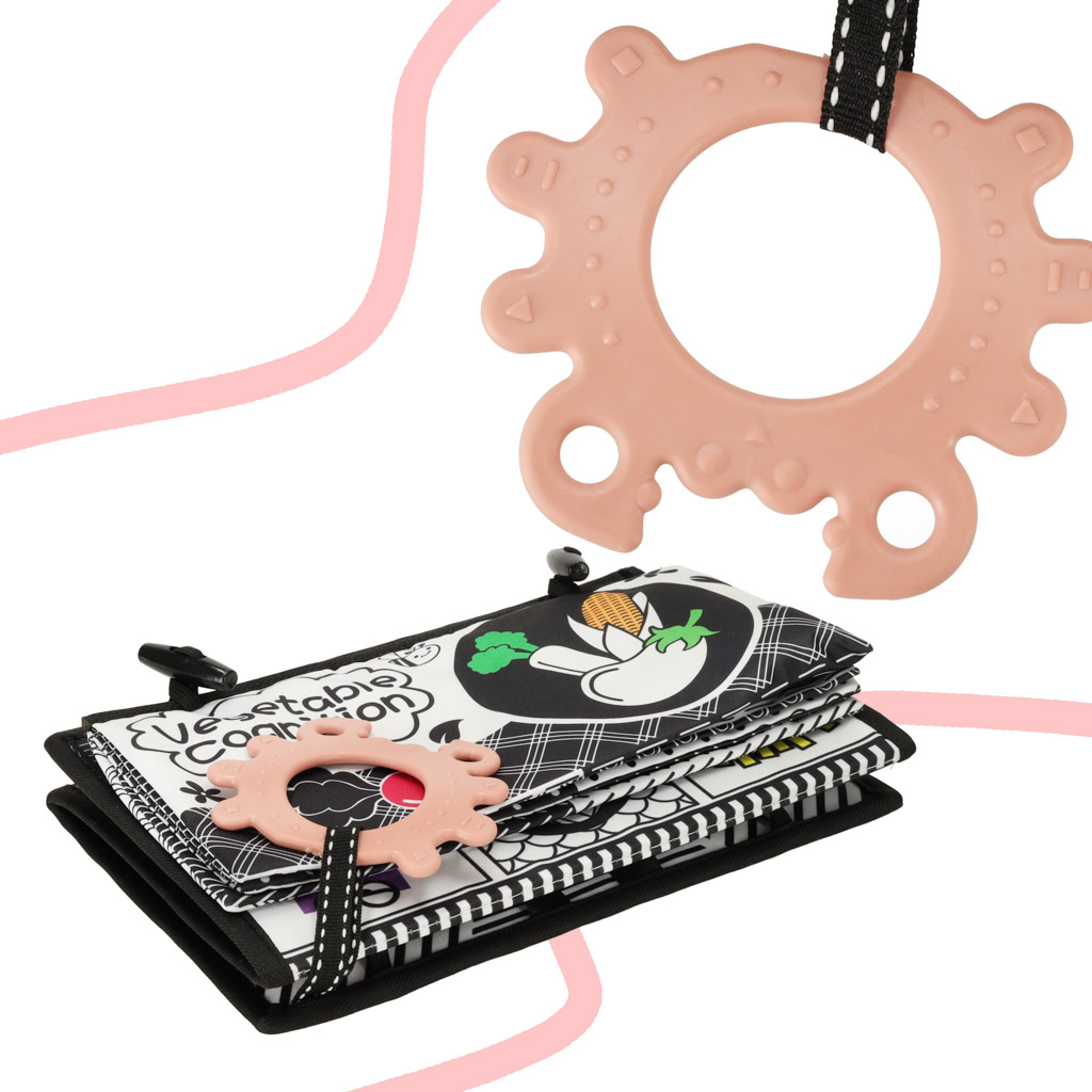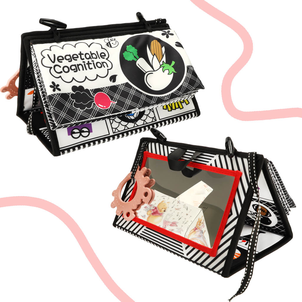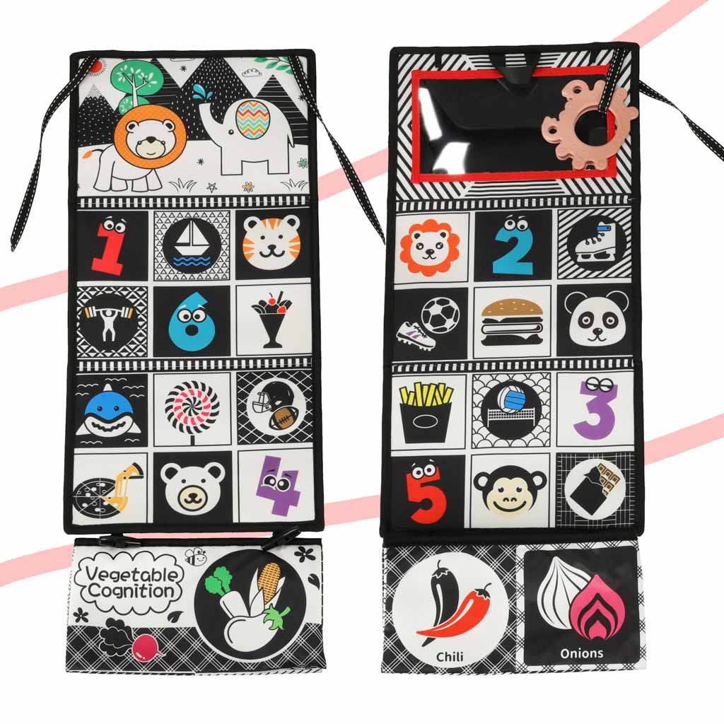 Książeczka mata sensoryczna kontrastowa do łóżeczka lusterko gryzak