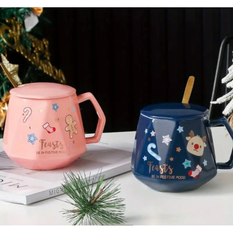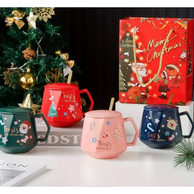 KUBEK CERAMICZNY CZERWONY z motywem świątecznym