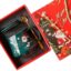 KUBEK CERAMICZNY CZERWONY z motywem świątecznymzestaw z pokrywką i łyżeczką