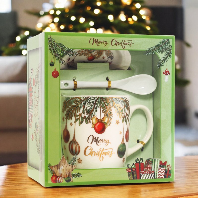 KUBEK ŚWIĄTECZNY – zestaw w pudełku z zaparzaczem i łyżeczką 400 ml KB16WZ3