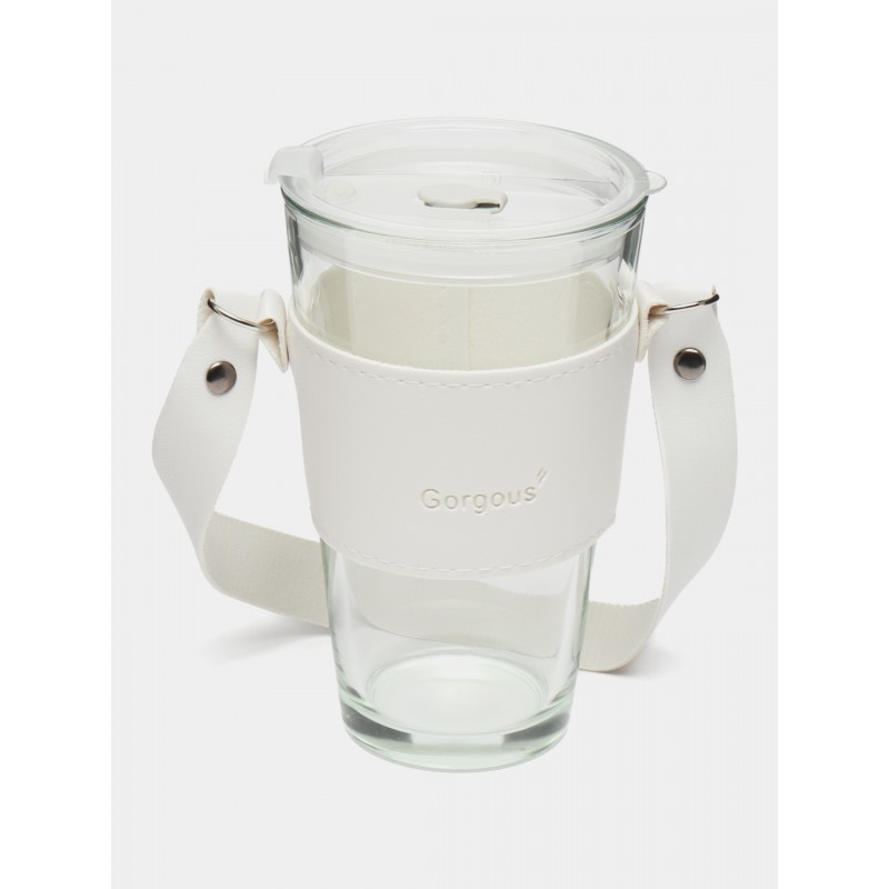 Kubek ze szkła na Kawę Herbatę ze słomką i zamknięciem 450 ML CUP09B