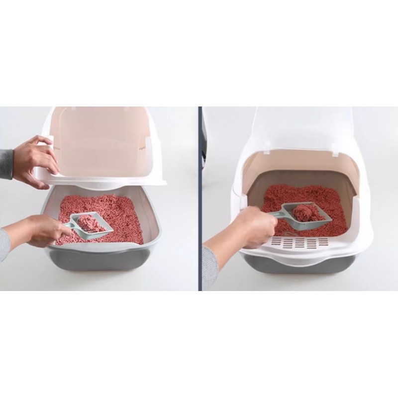 Kuweta zamknięta dla kota na żwirek z filtrem i łopatką SZARA KOT14