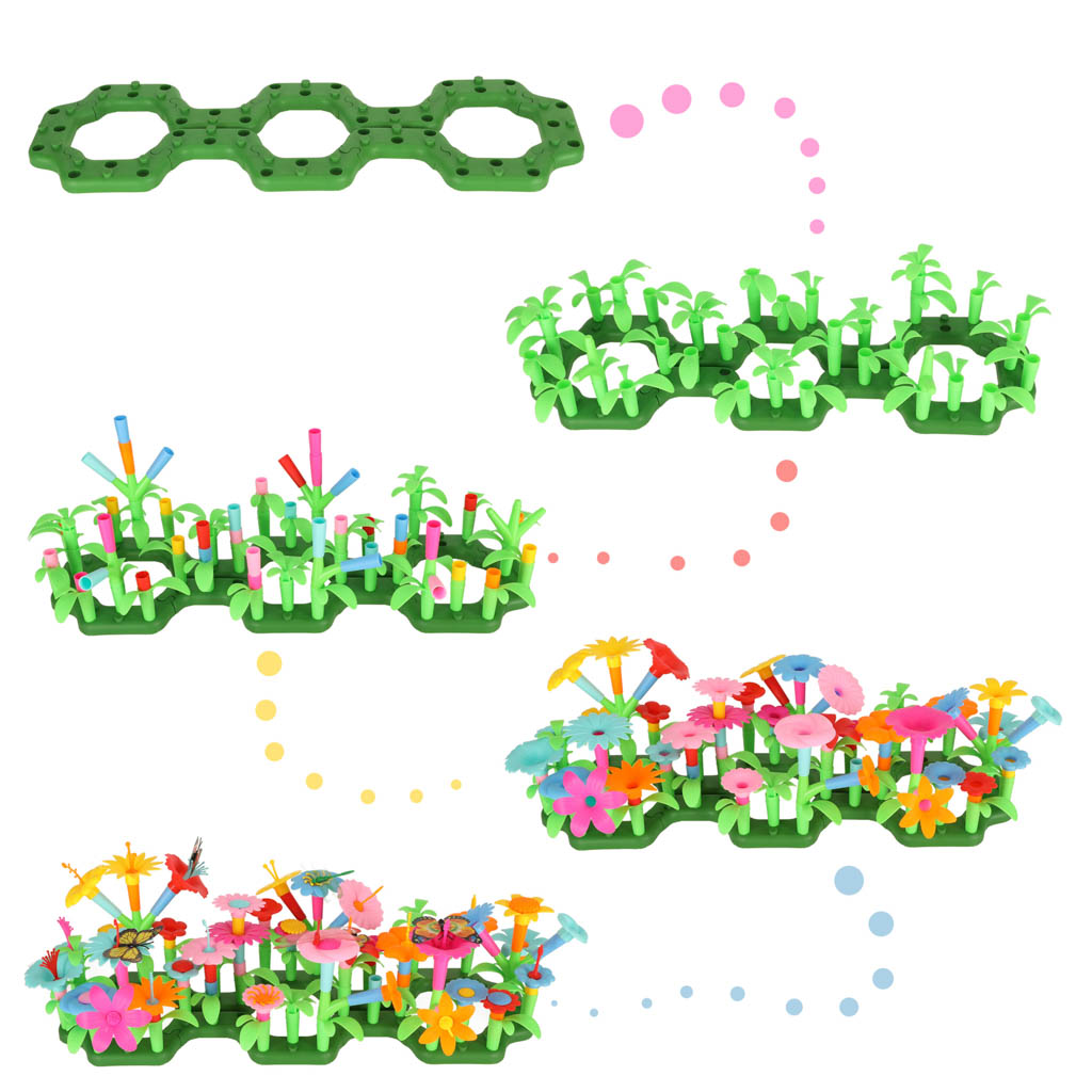 Zestaw klocków kreatywnych, który pozwala na zbudowanie własnego kwiatowego ogrodu! 175 klocków pozwala na dowolne łączenie elementów. Zabawa rozwija kreatywność i zdolności manualne. Tworzywo: plastik. Wymiary zbudowanego ogrodu: 36x36x20 cm.