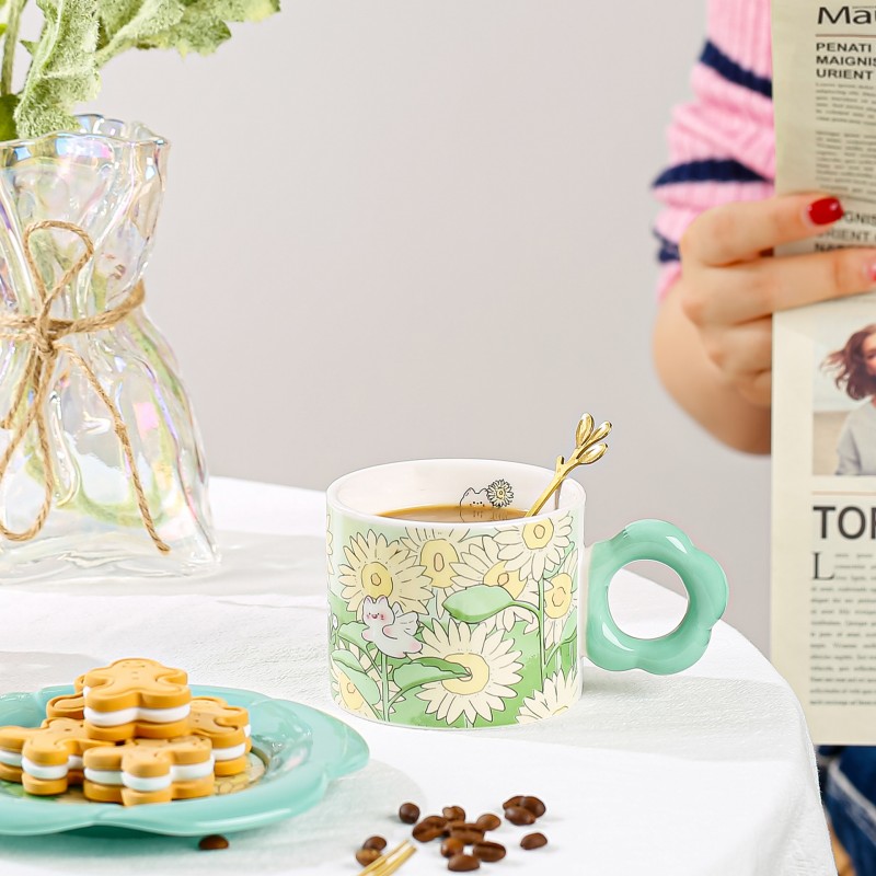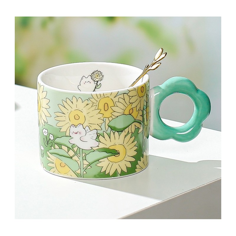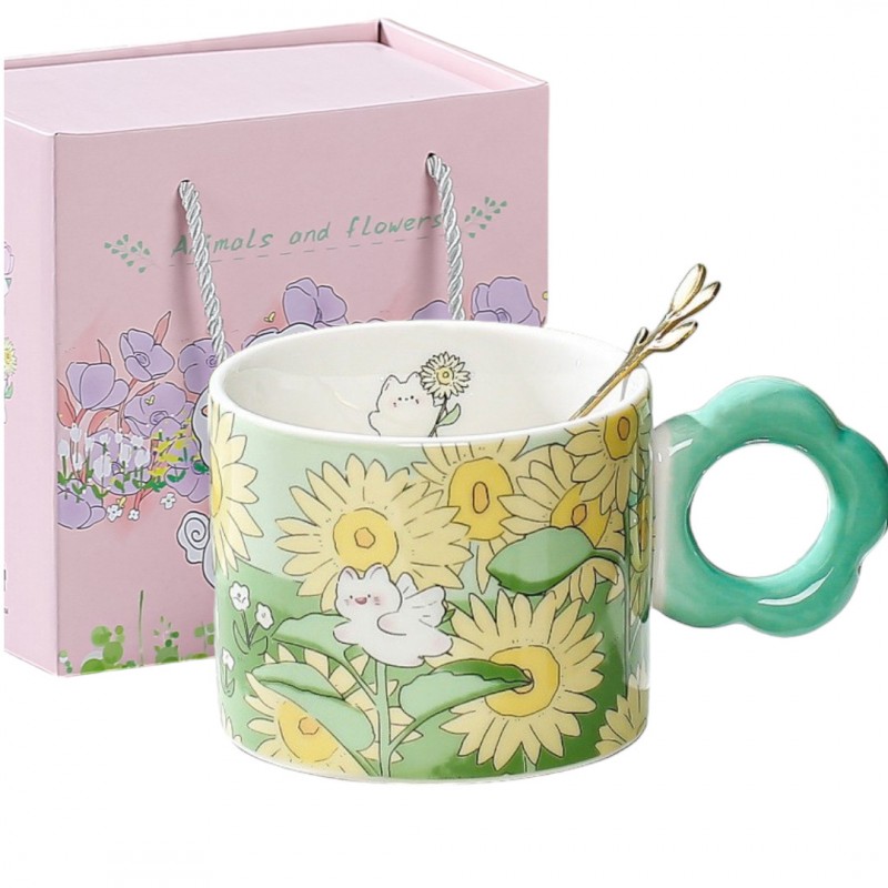 Kwiatowy Kubek z łyżeczką 280 ml + Pudełko na Prezent KB01ZIE