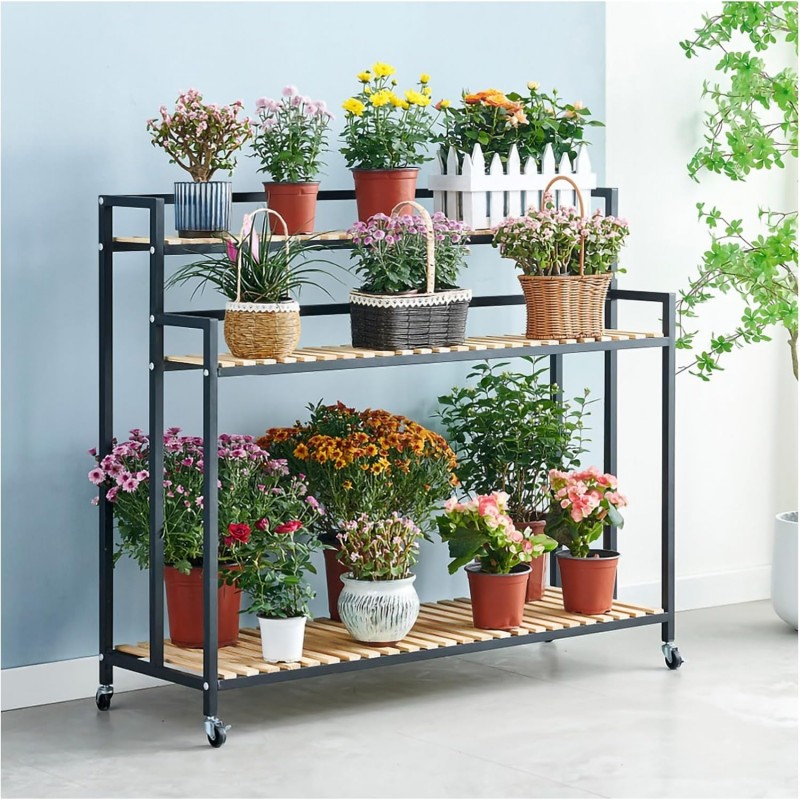 Kwietnik, regał, stojak na kwiaty 3 poziomowy,100 x 40 x 102cm, czarny SZ42