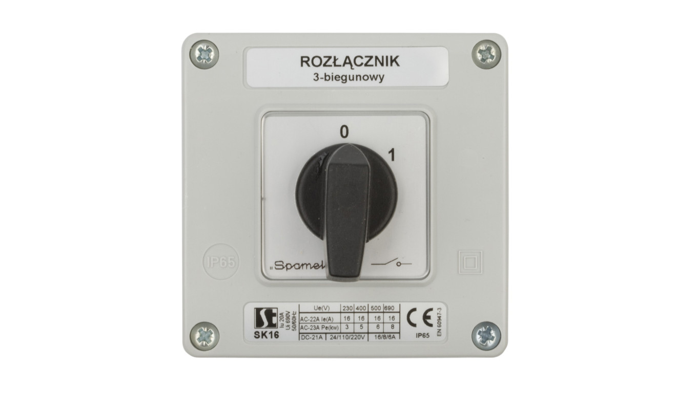 Łącznik krzywkowy 0-1 3P 16A w obudowie SK16-2.8211OB11