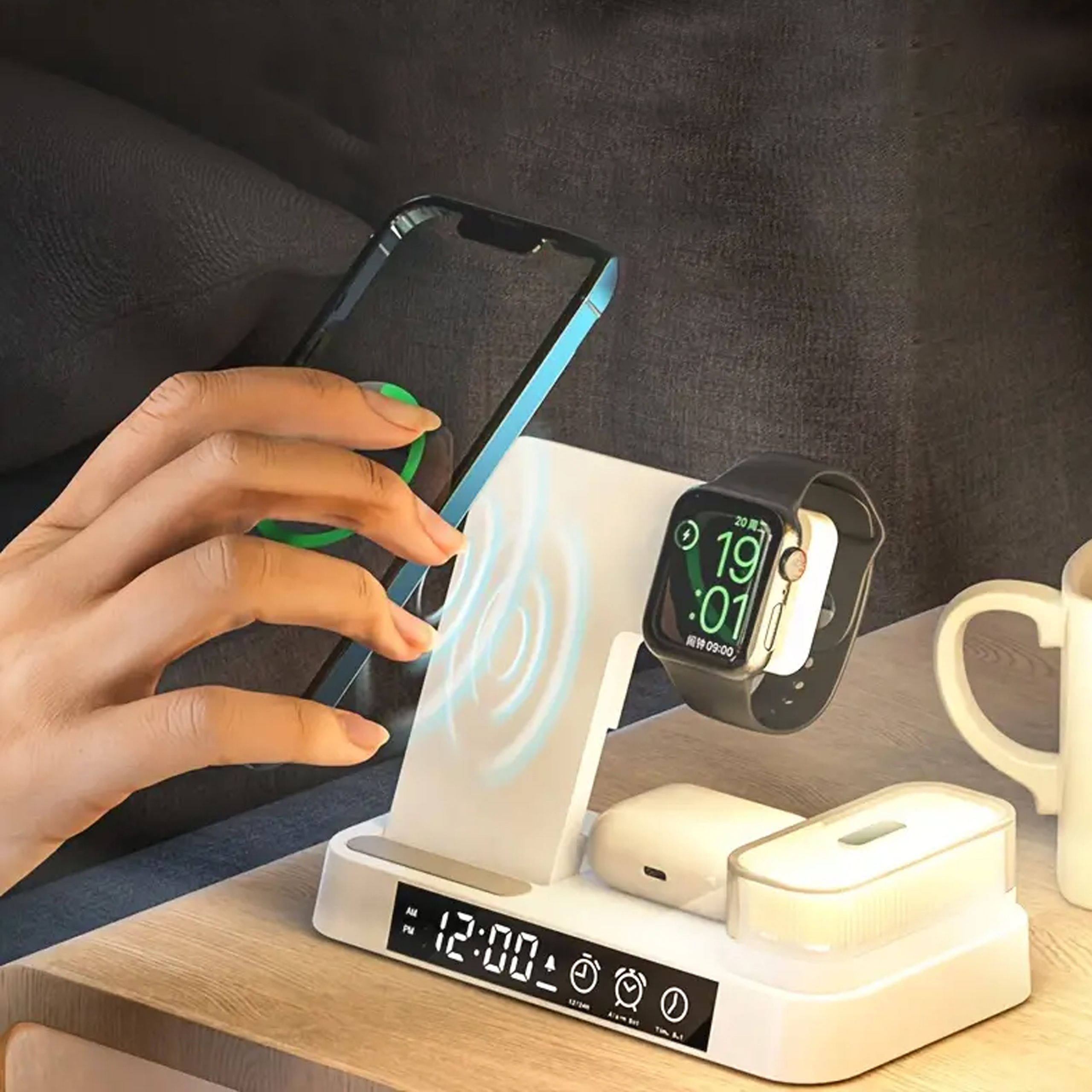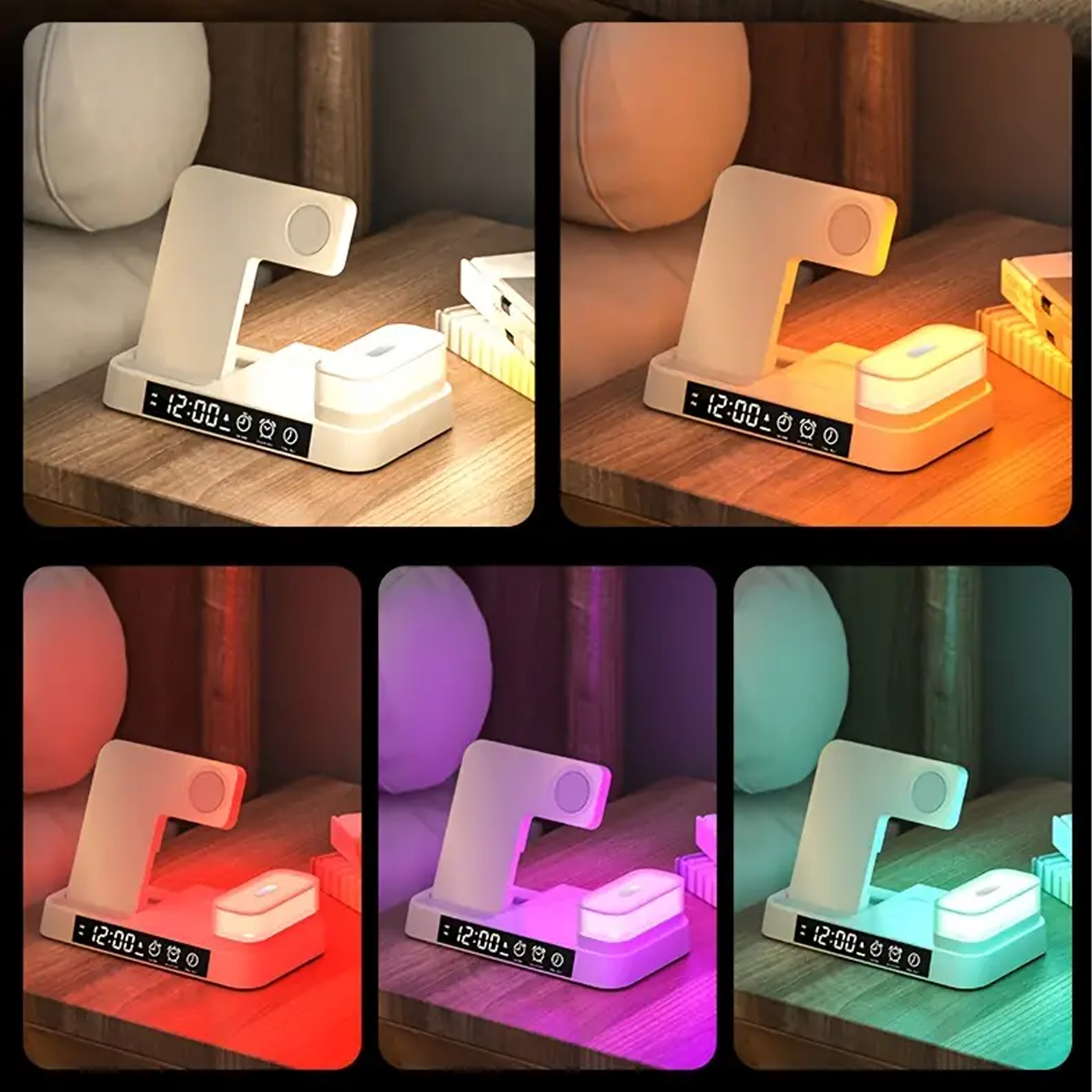 Ładowarka Indukcyjna Stacja Indukcja Bezprzewodowa 15W lampka Nocna 4w1 QI