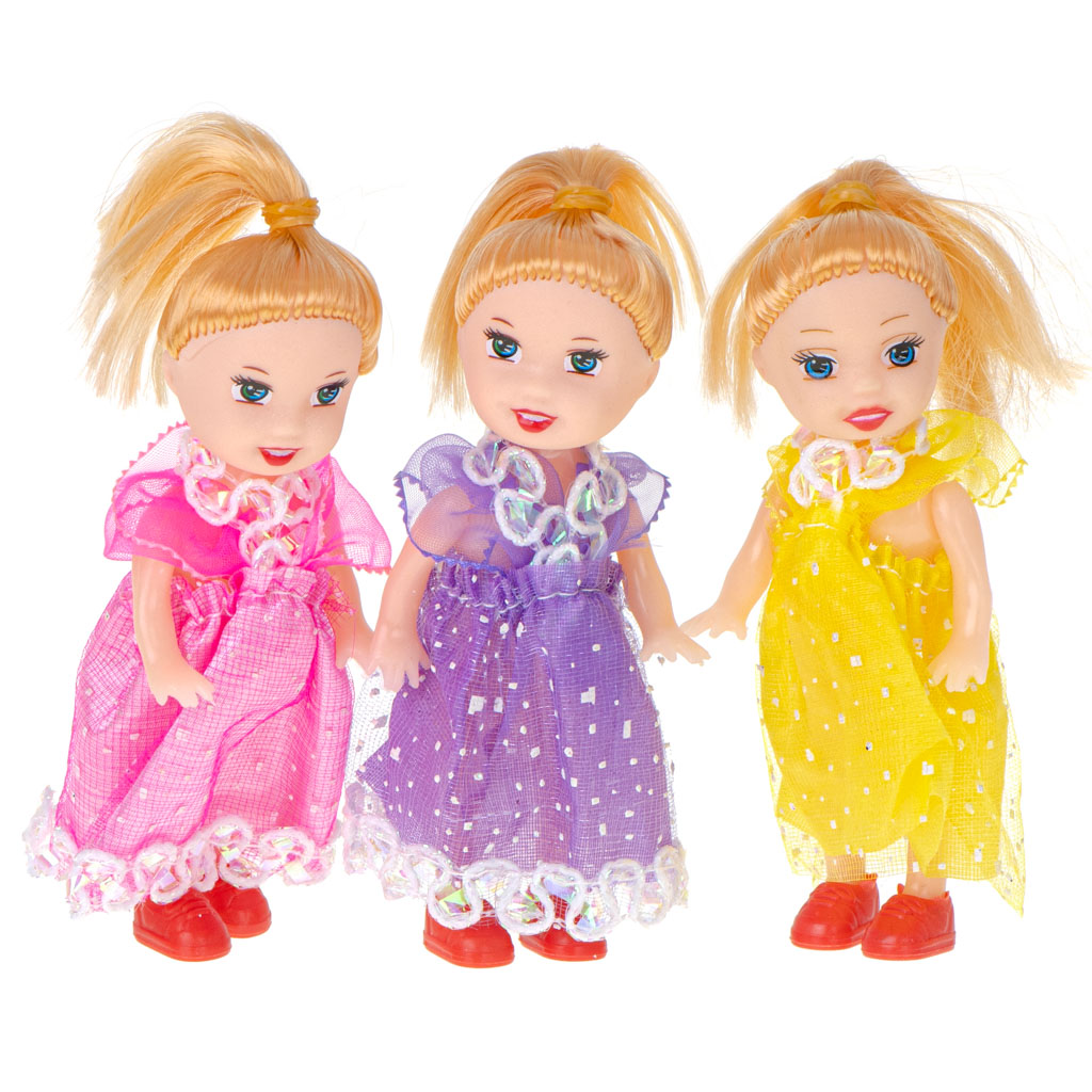 Fantastyczny zestaw trzech małych laleczek, które bez problemu zmieszczą się w każdym domku dla lalek. Zabawa lalkami rozwija wyobraźnię i zdolności manualne. Ilość: 3szt. Materiał: tworzywo sztuczne. Wym. lalki: 10cm.