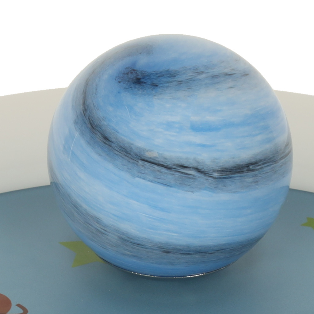 Okrągła niebieska lampa LED z astronautą na suficie podkreśli wystrój pokoju dziecięcego, zachęcając pociechę do nauki i zabawy. Ma funkcję przyciemniania oraz regulację ciepłego/zimnego światła. Wymiary: 50 cm x 15 cm, kolor: niebieski