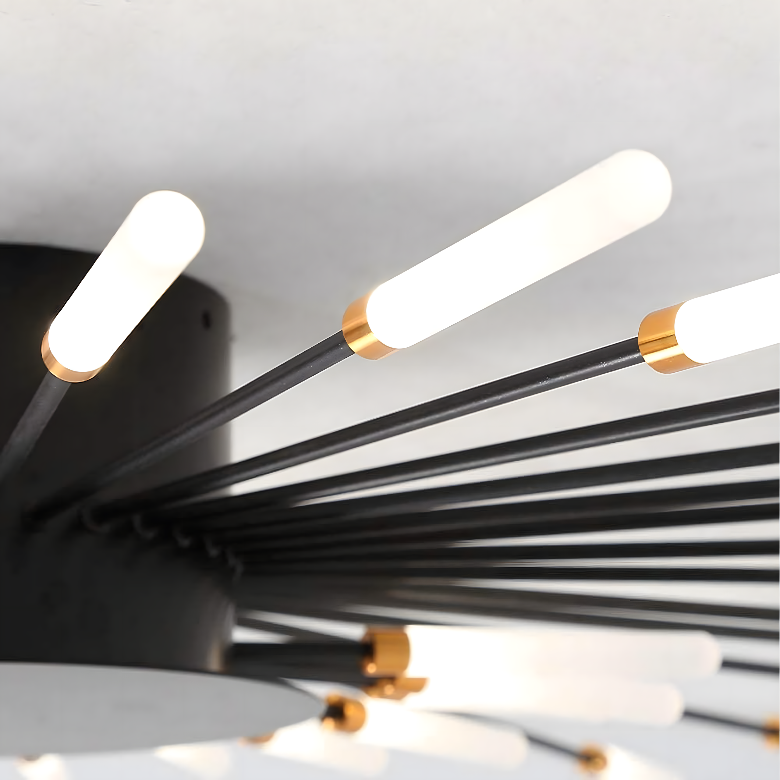 Nowoczesna lampa sufitowa LED „Fajerwerki” 12W – elegancja i styl w jednym! Efektowny żyrandol z 12 ramionami, w matowej czerni ze złotymi akcentami. Zintegrowane źródła LED zapewniają jasne, energooszczędne oświetlenie. Idealna do salonu, jadalni lub nowoczesnych wnętrz.