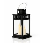 Lampion dekoracyjny LED z imitacją świec Stylowy czarny lampion z tworzywa sztucznego z realistyczną imitacją świec LED.