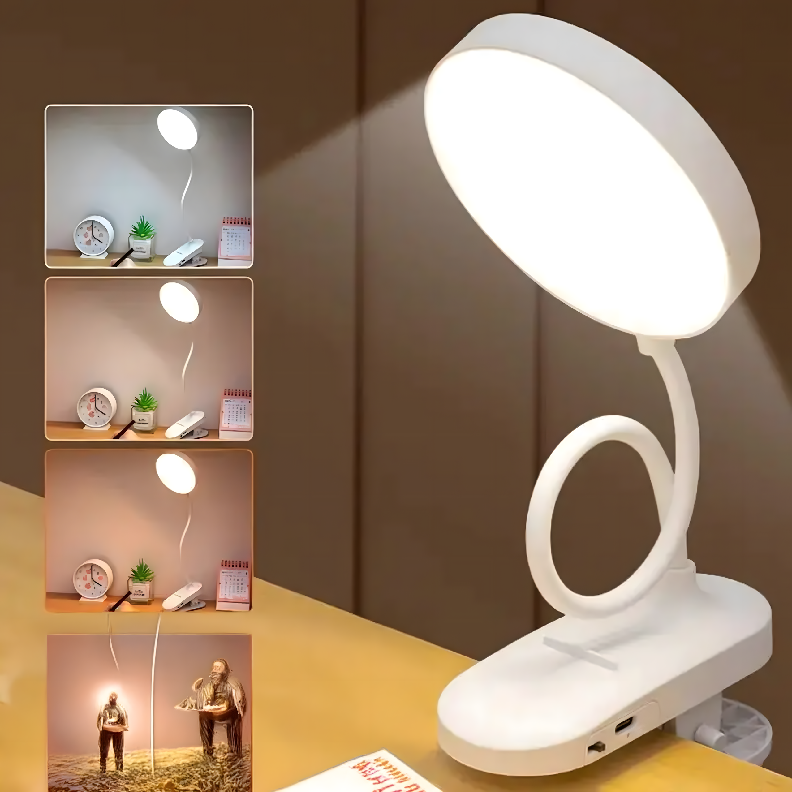 Bezprzewodowa lampka LED na klips – idealna do czytania, pracy i nauki. Posiada elastyczne ramię 360°, 3 poziomy jasności, ładowanie USB i mocny, antypoślizgowy zacisk. Można ją przypiąć do półki lub postawić na biurku. Kompaktowa, energooszczędna i przyjazna dla oczu.