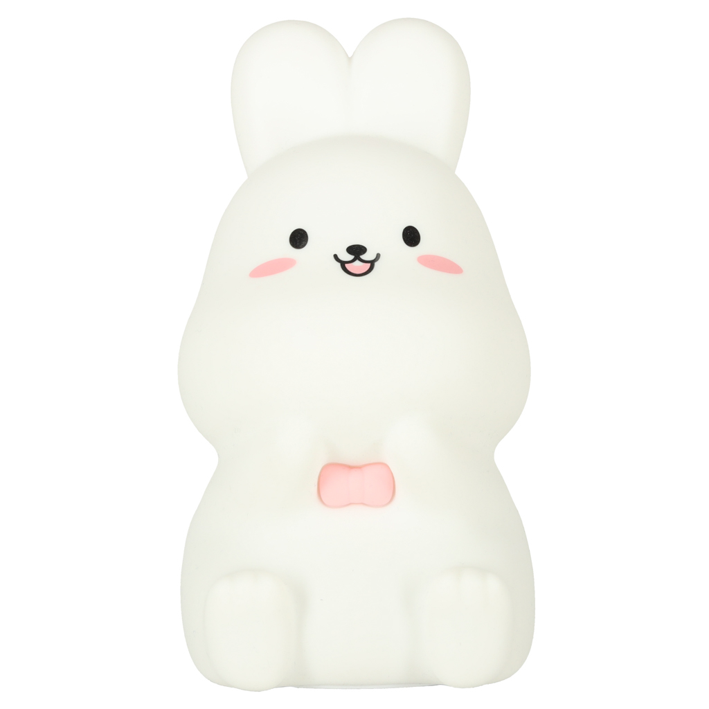 Lampka nocna dla dzieci silikonowa dotykowa miękka LED RGB biała z różem króliczek