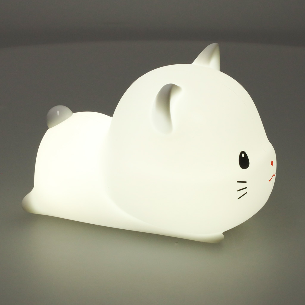 Lampka nocna dla dzieci silikonowa dotykowa miękka USB biała kotek leżący