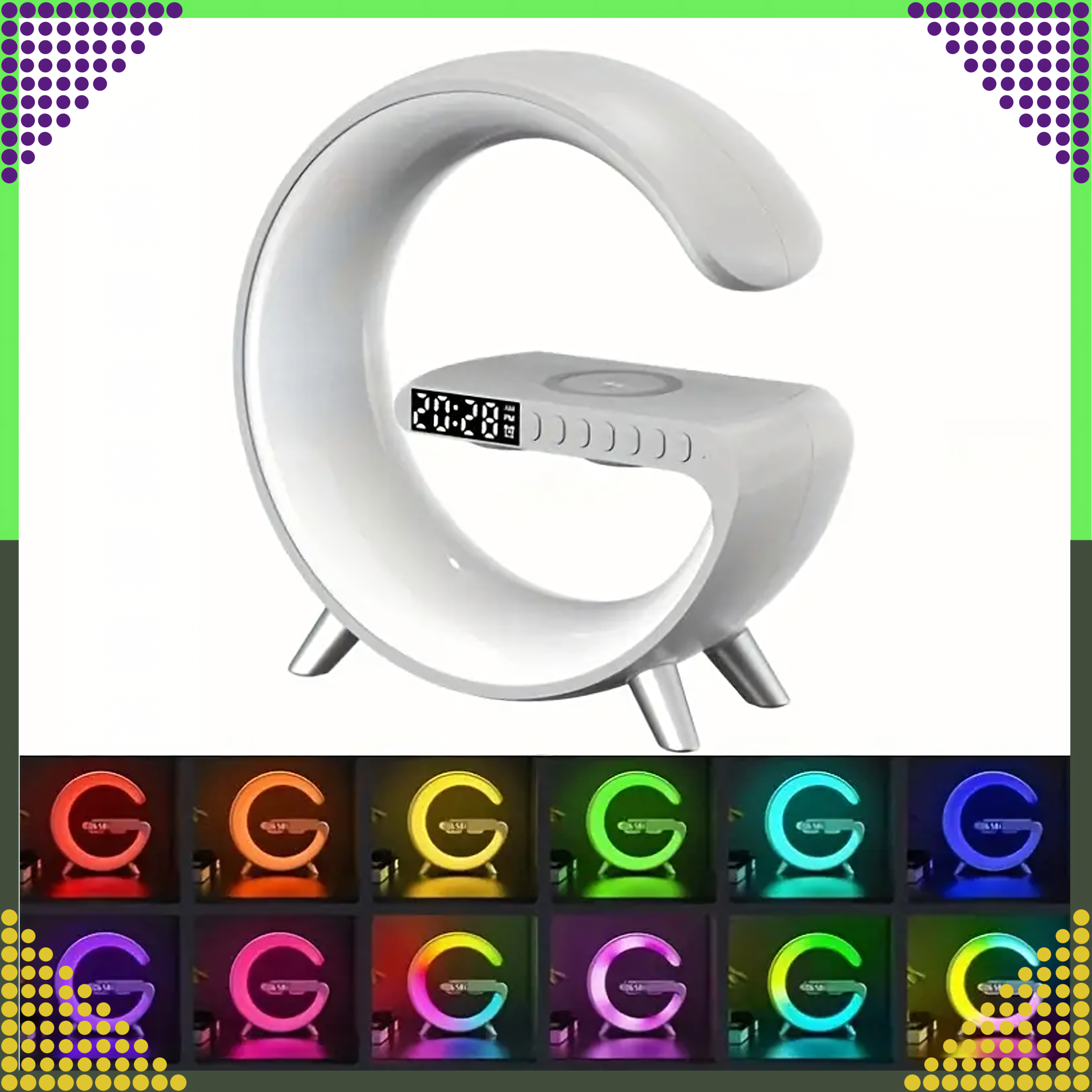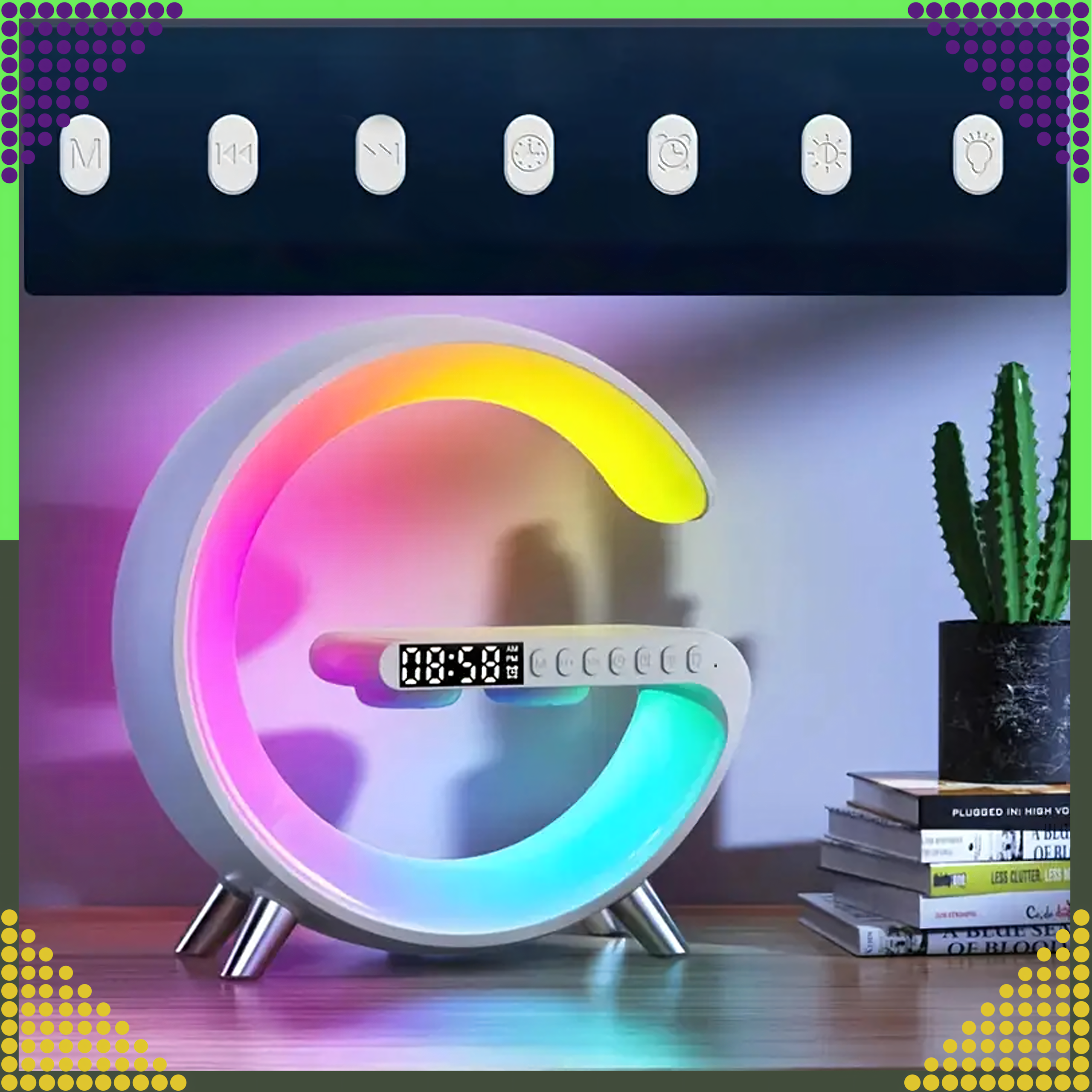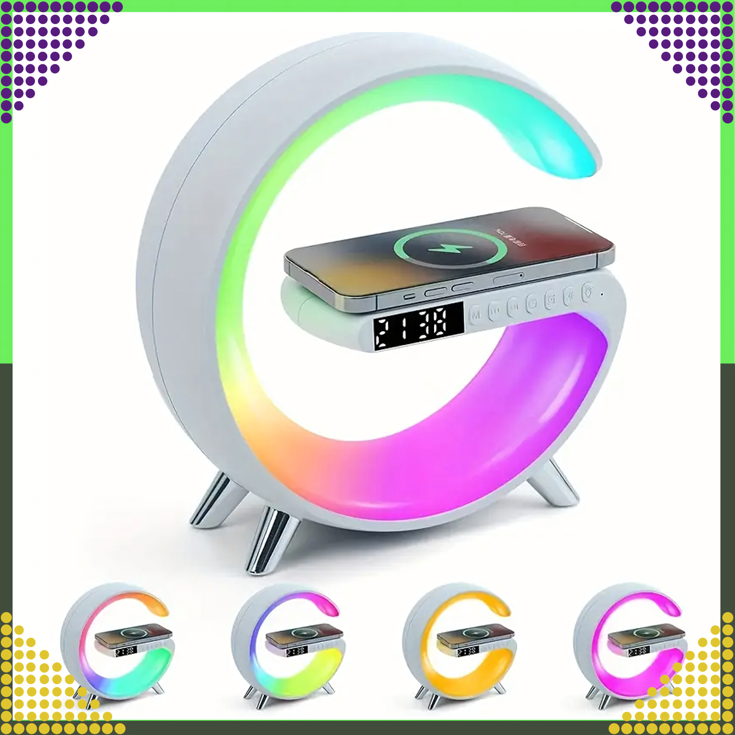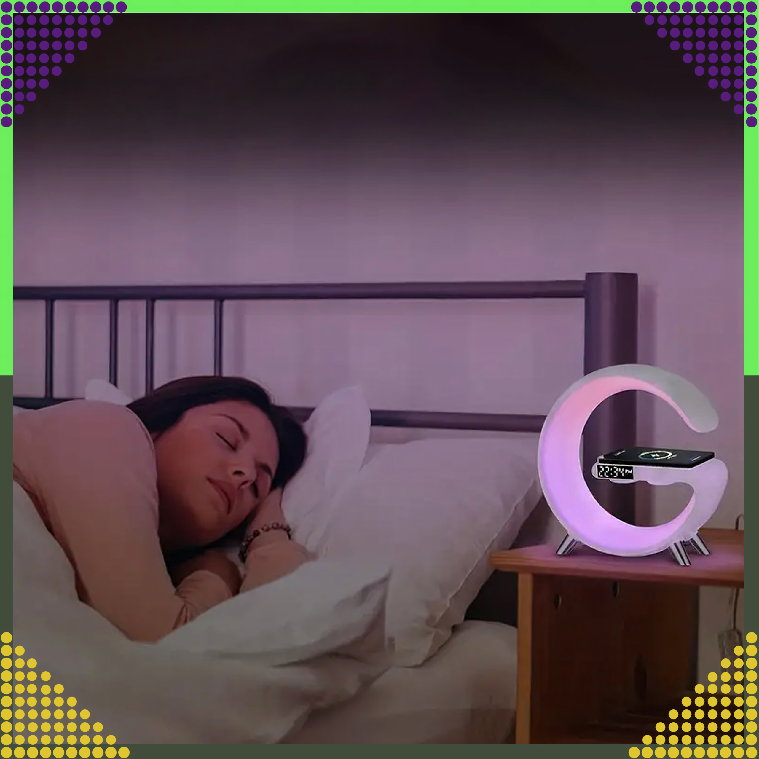 Lampka Nocna Led Sterowana Telefonem Indukcja Qi Głośnik Zegar Budzik RGB