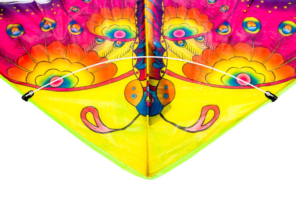 Piękny kolorowy latawiec o oryginalnym kształcie motyla wykonany z