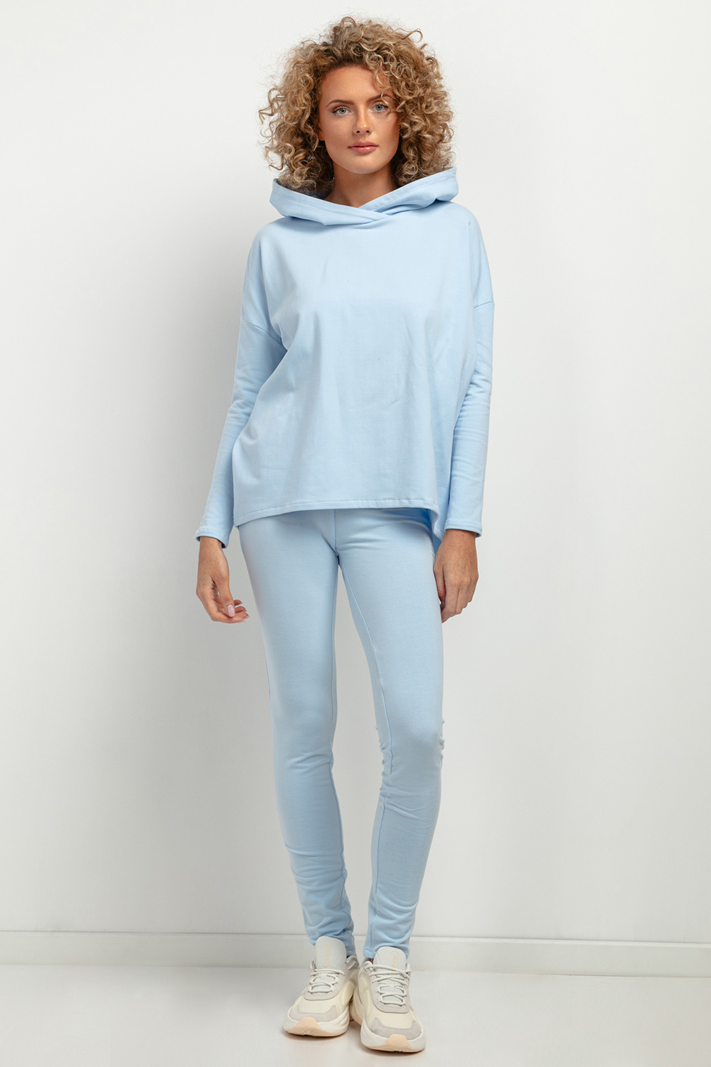 Przylegające spodnie damskie w stylu legginsów z dresowej dzianiny są wygodne i niezawodne podczas uprawiania sportu w jesienne dni, czy pośpiesznego życia w wielkim mieście. Spodnie posiadają szeroki pas na biodrach i małe zaszewki z tyłu, które podkreślają figurę. Legginsy są szyte z dzianiny z certyfikatem OEKO-TEX Standard 100.