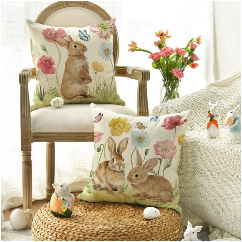 Lniana poszewka na poduszkę 45 x 45 cm motyw wiosenny Króliczek POD221