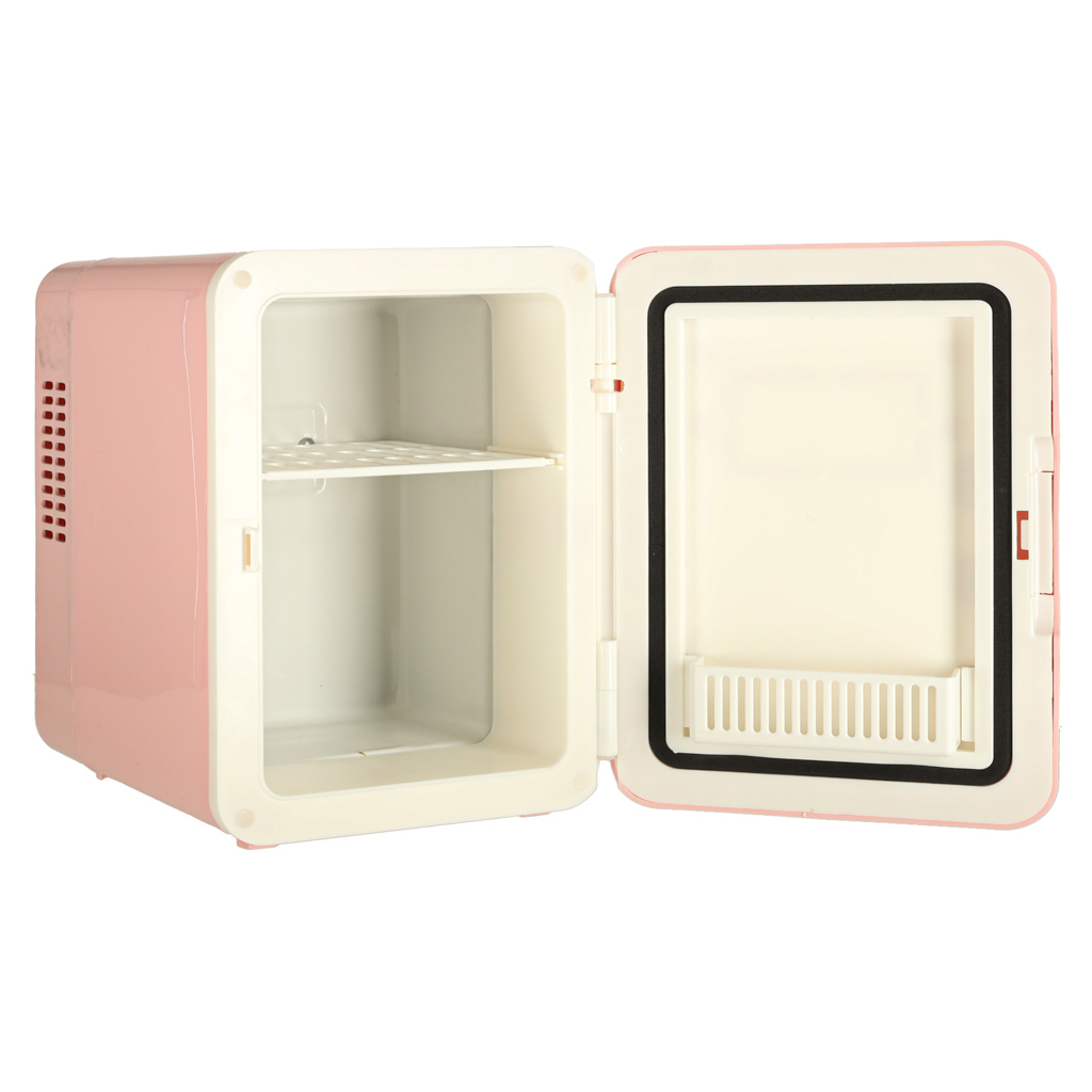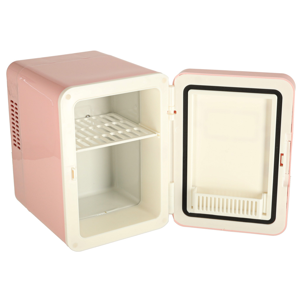 Lodówka turystyczna elektryczna samochodowa mini na jedzenie kosmetyki grzanie chłodzenie 2w1 4L różowa