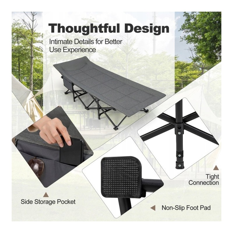 Łóżko turystyczne, polowe, kanadyjka 187 x 68cm składane z kieszonką AR05SZ