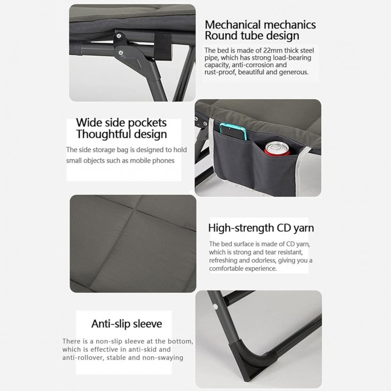 Łóżko turystyczne, polowe, kanadyjka 200 x 64cm składane z kieszonką AR06SZ