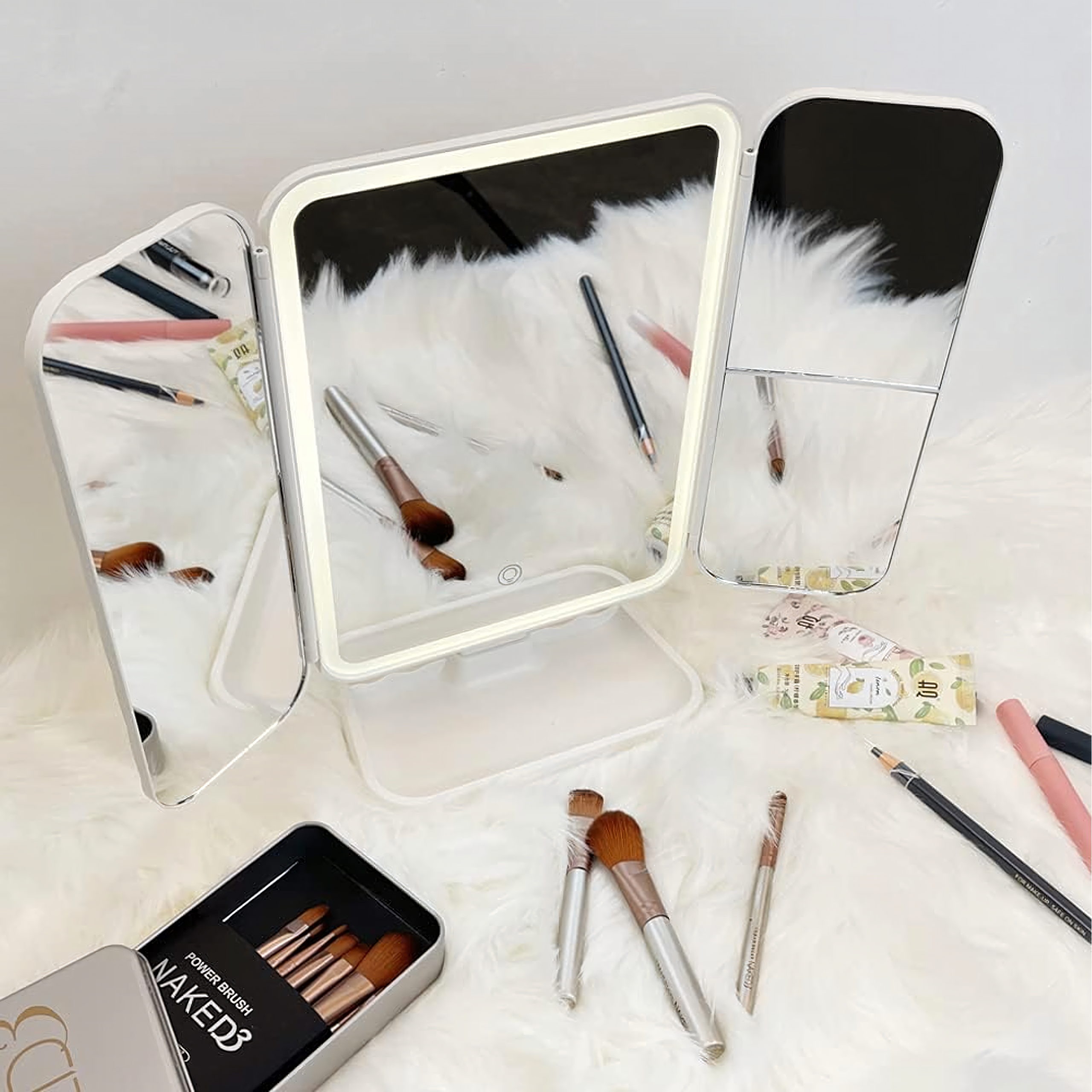 Lusterko Kosmetyczne Podświetlane Led Rozkładane Lustro do Makijażu x3