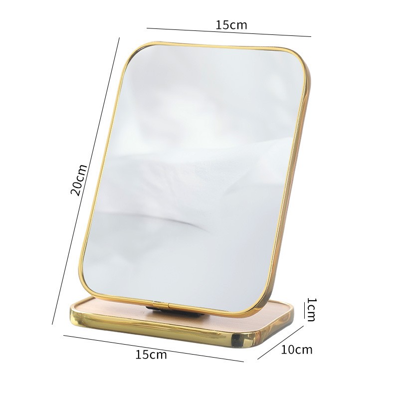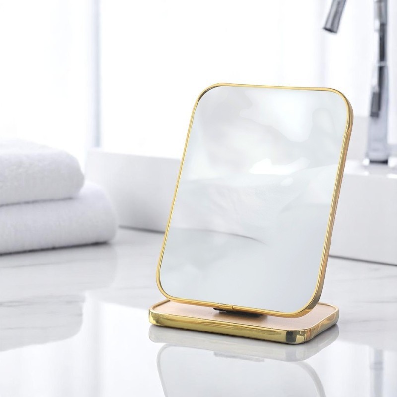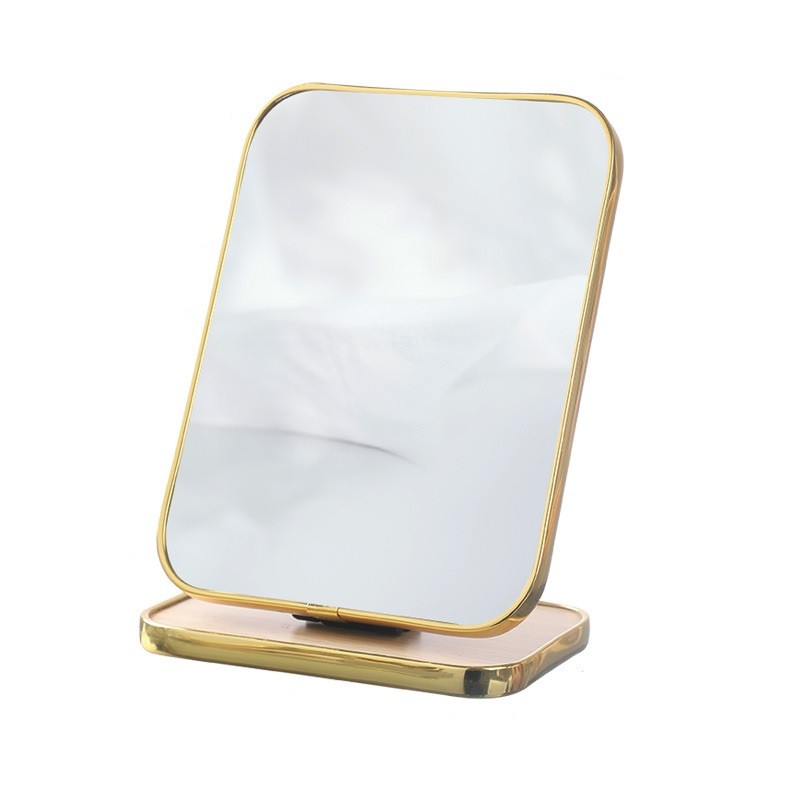 Lusterko kosmetyczne stojące drewniane, prostokątne, złota ramka 15 x 20cm L19