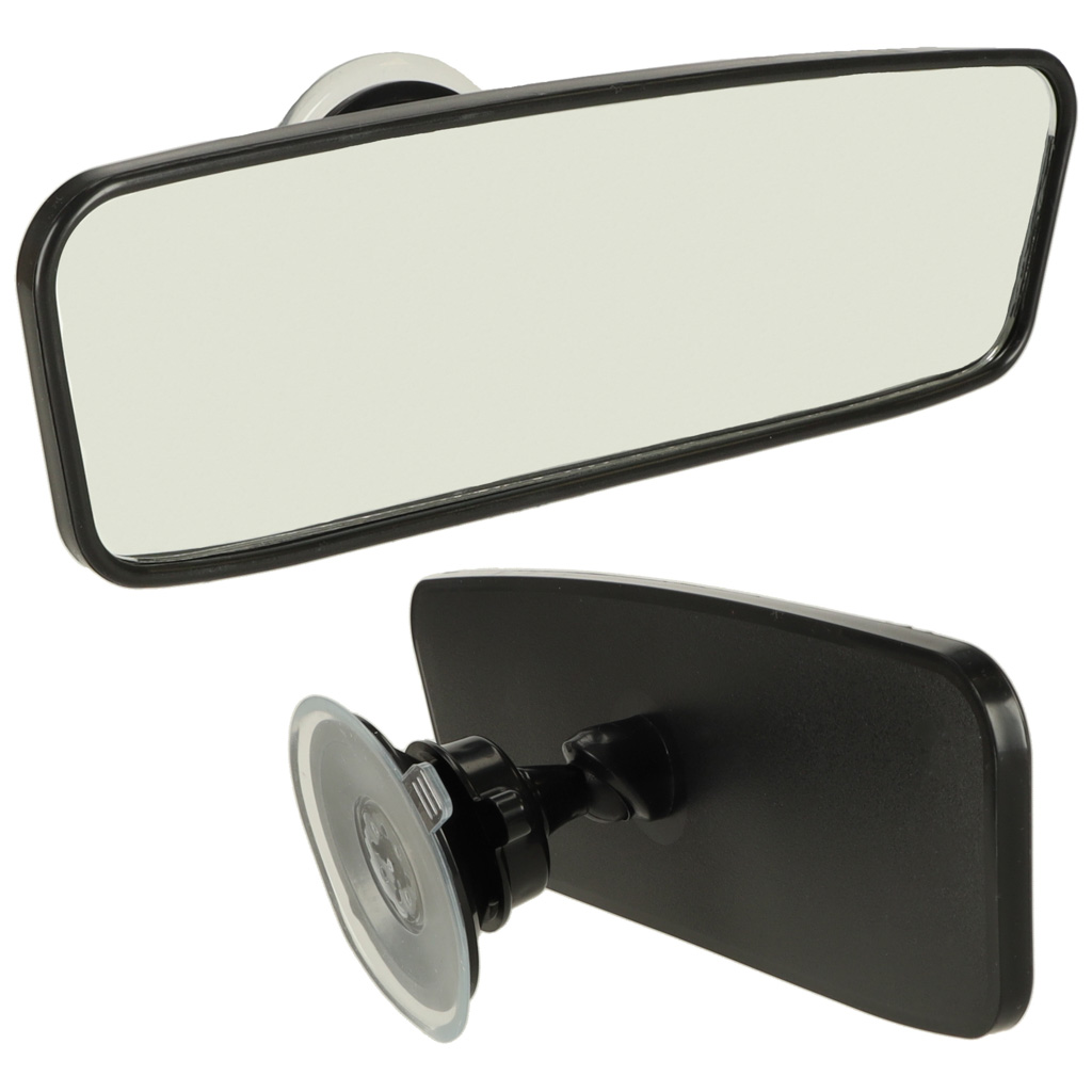 Samochodowe lusterko wsteczne szerokokątne posiadające praktyczną przyssawkę. Niezbędny przedmiot każdego kierowcy. Model: CZc-100. Dostępne w kolorze czarnym. Tworzywo: ABS. Wymiary: 20x6cm.