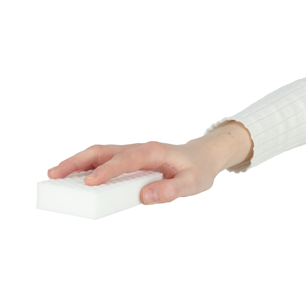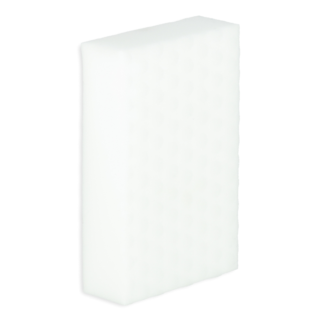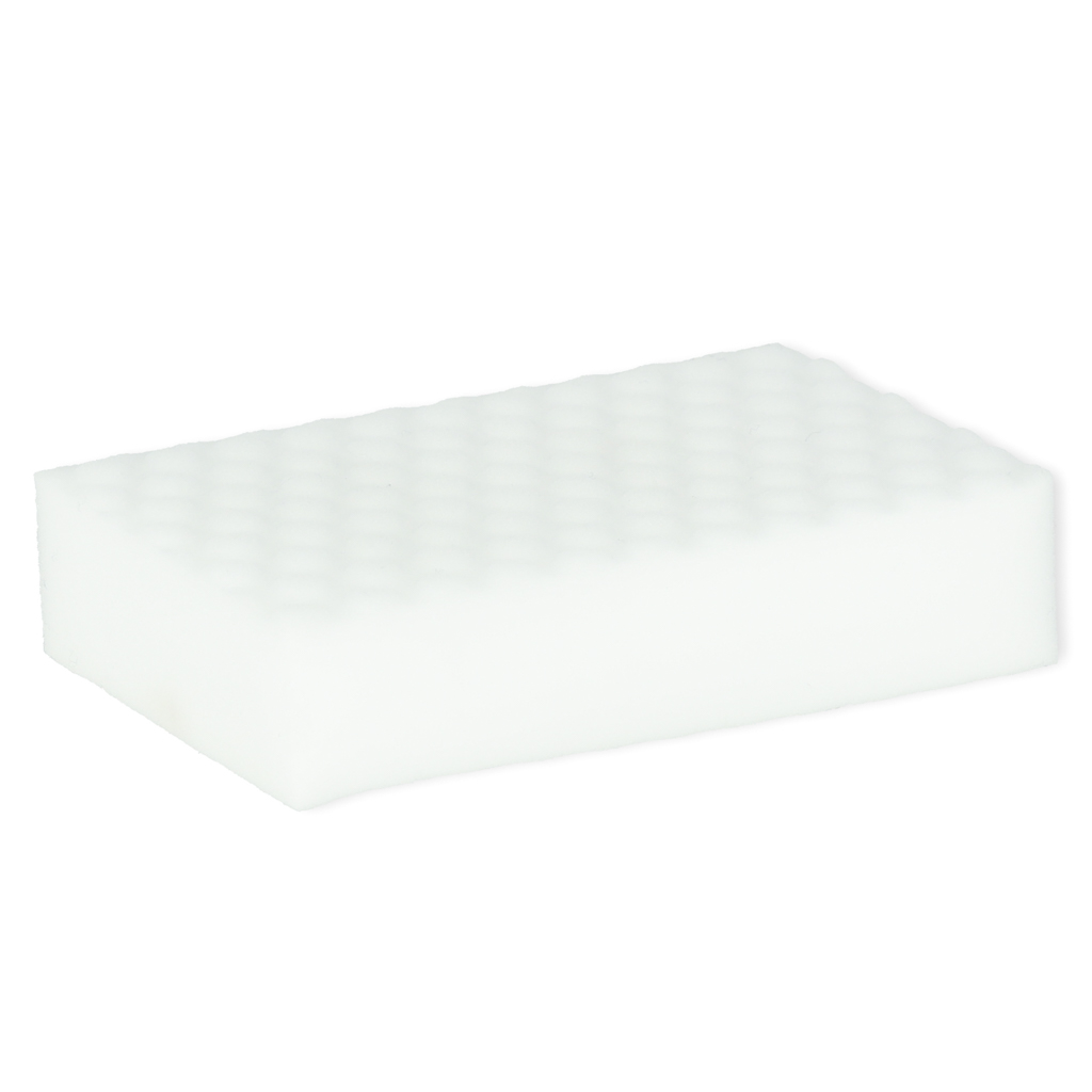 Magiczna gąbka z melaminy na trudne zabrudzenia. Czyści uporczywe zabrudzenia bez dodatkowych detergentów. Idealna do mycia ścian, szafek, szkła czy karoserii. Kolor: biały. Wym. gąbki: 10x6x2cm.