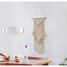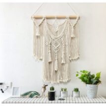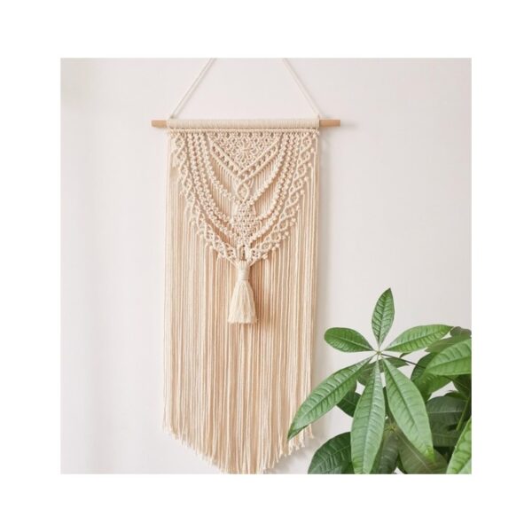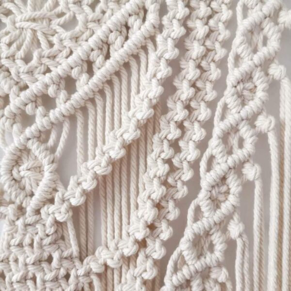 Piękna makrama w klimacie boho pasująca do wielu wnętrz Ozdoba możliwa również do zastosowania do sesji fotograficznych czy jako dekoracja przy wielu tematycznych uroczystościach Makrama wyplatana z bawełnianego sznurka plecionego o grubości 5 mm. Wymiary: