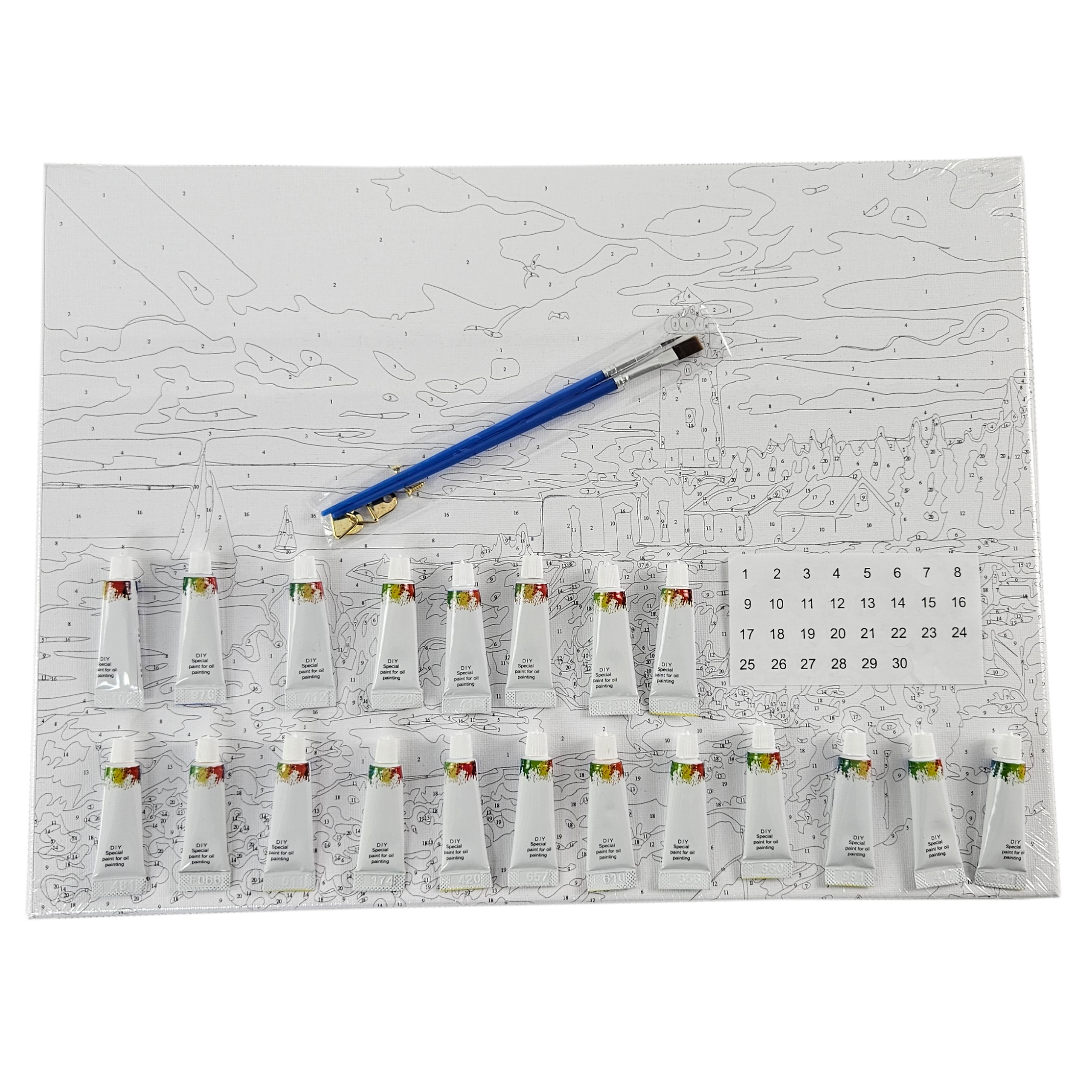MALOWANIE PO NUMERACH OBRAZ Z RAMĄ DIY ZESTAW PĘDZLE FARBY PŁÓTNO 30×40