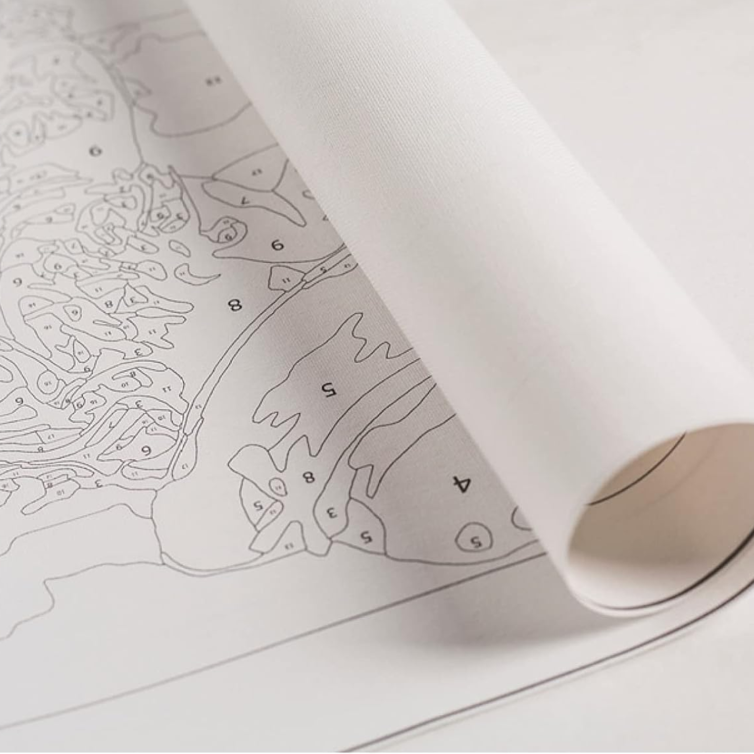 W skład zestawu wchodzi płótno z naniesionymi numerami w określonych polach. Każdy numer odpowiada określonemu kolorowi farby, a Twoim zadaniem jest wypełnienie tych pól odpowiednimi kolorami.