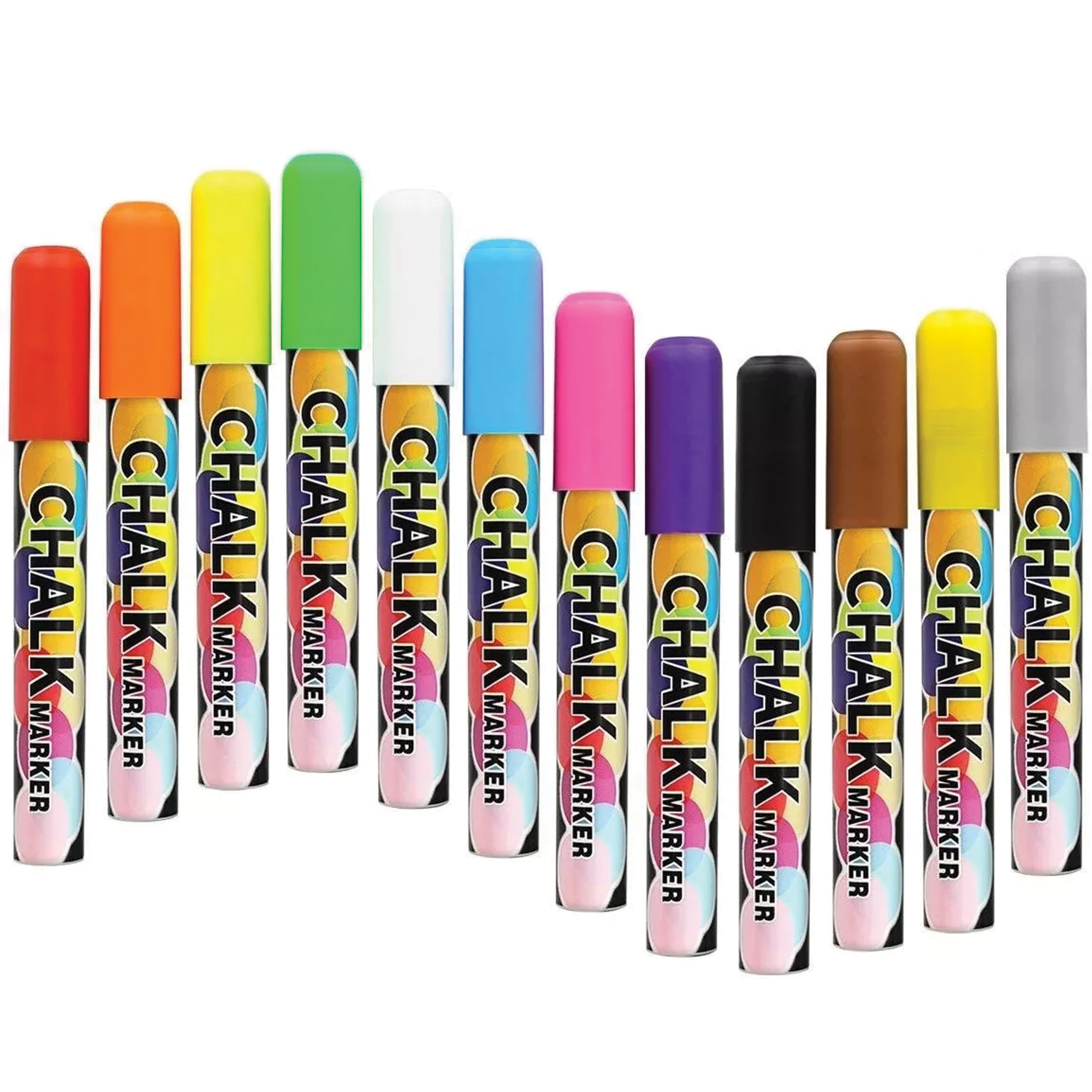 Zestaw markerów kredowych do tablic / szyb 12 szt 6 mm