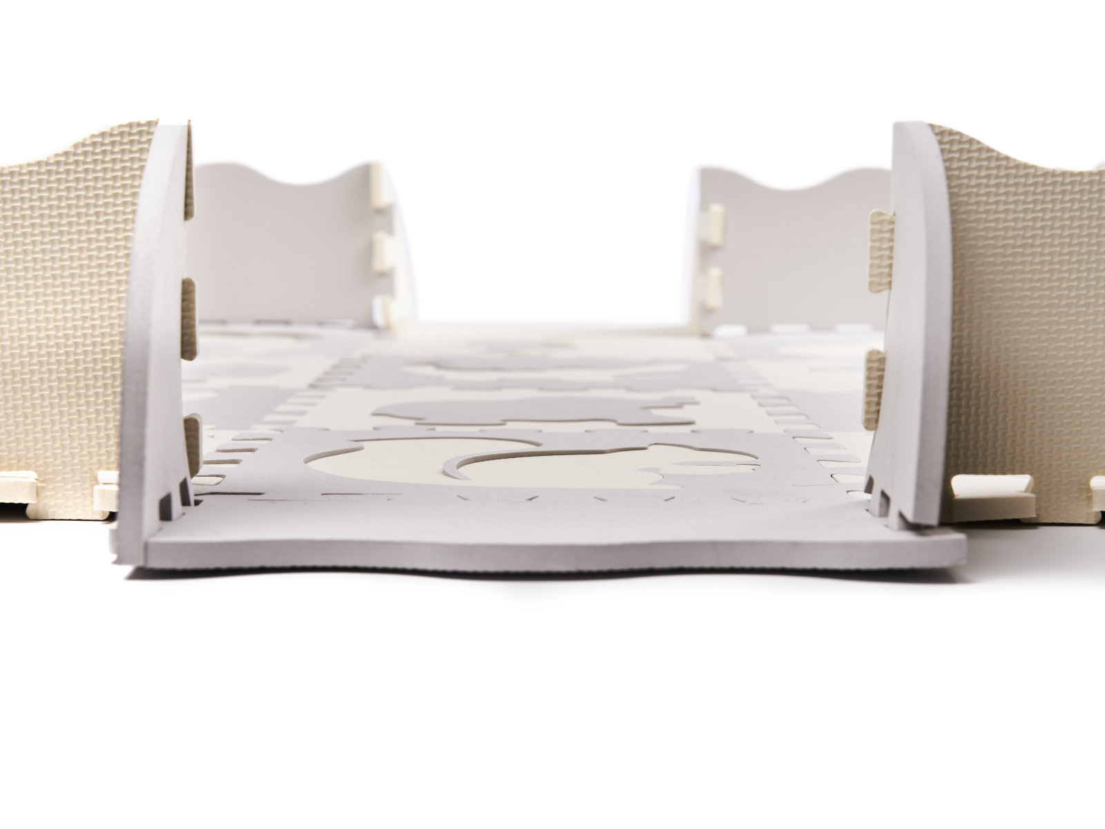 MATA EDUKACYJNA PIANKOWA PUZZLE KOJEC SZARA ECRU 144 X 144 CM 36