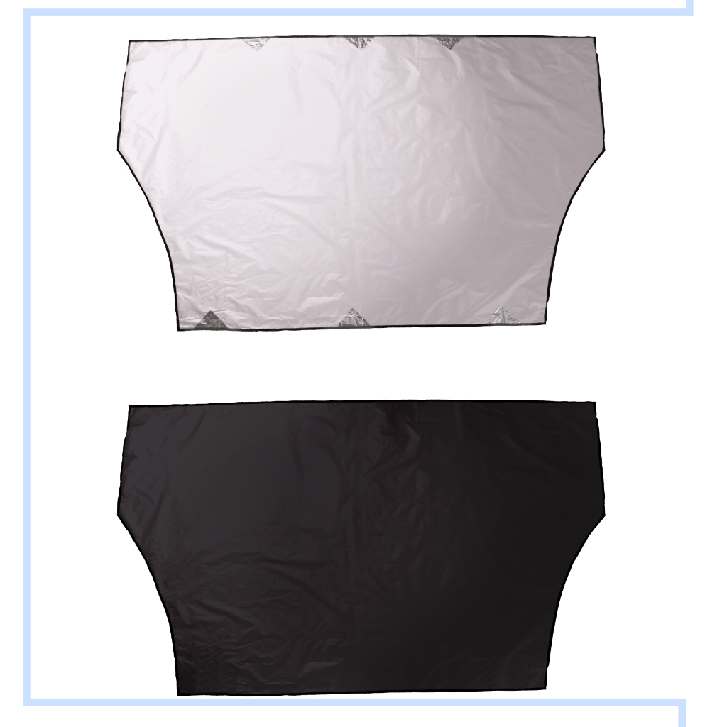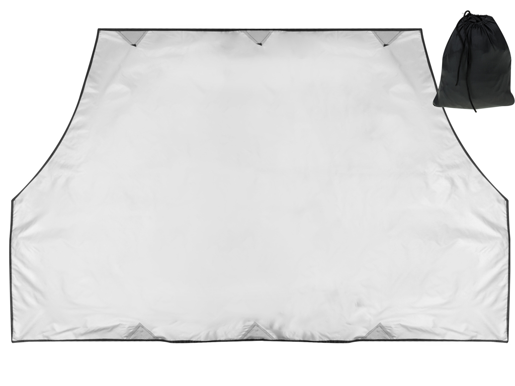 Magnetyczna kurtyna na przednią lub tylną szybę chroniąca przed słońcem i mrozem. Po złożeniu zajmuje mało miejsca. Łatwa w czyszczeniu. Tworzywo: poliester. Szerokość w dolnej części: 145cm. Szerokość w górnej części: 210cm. Wysokość: 125cm.