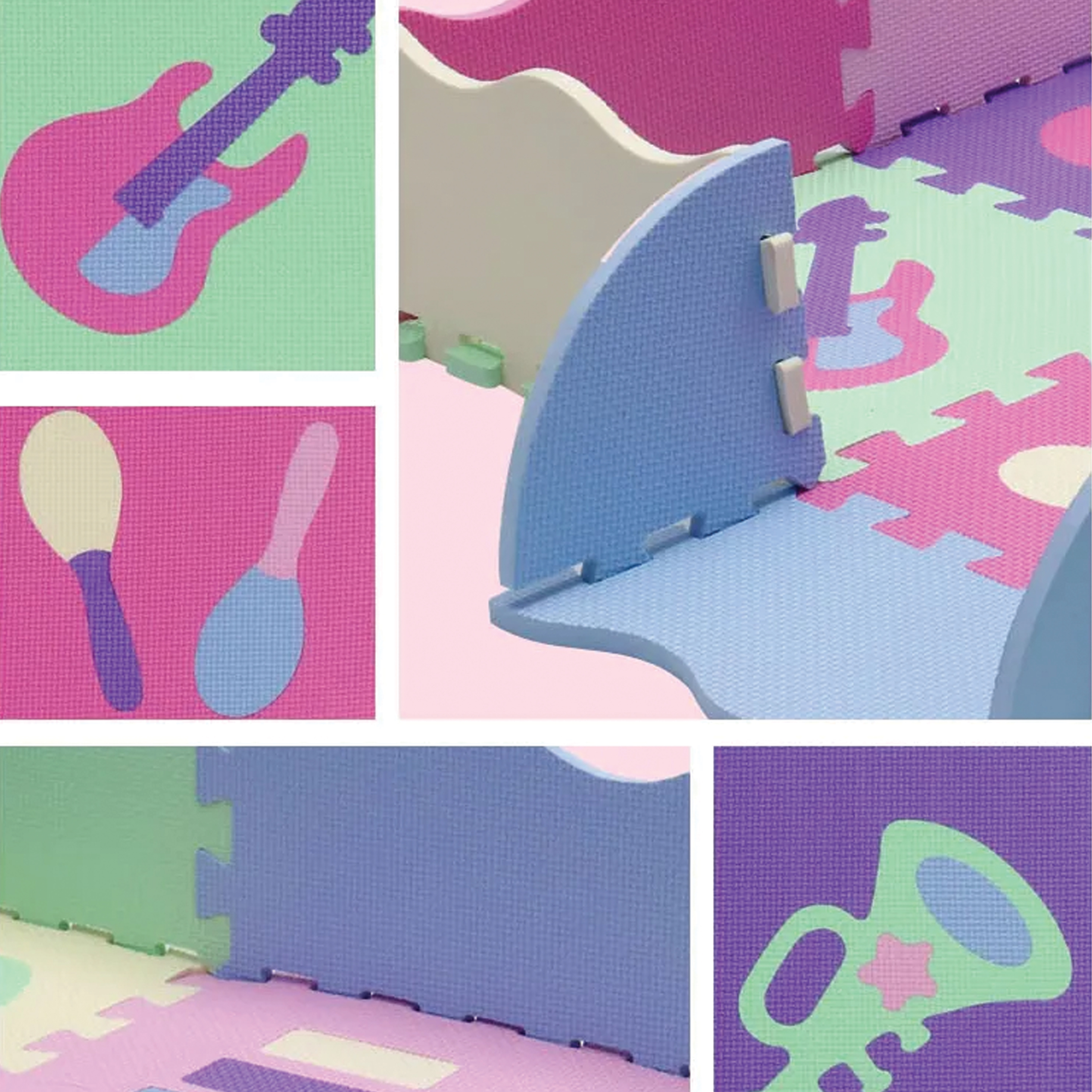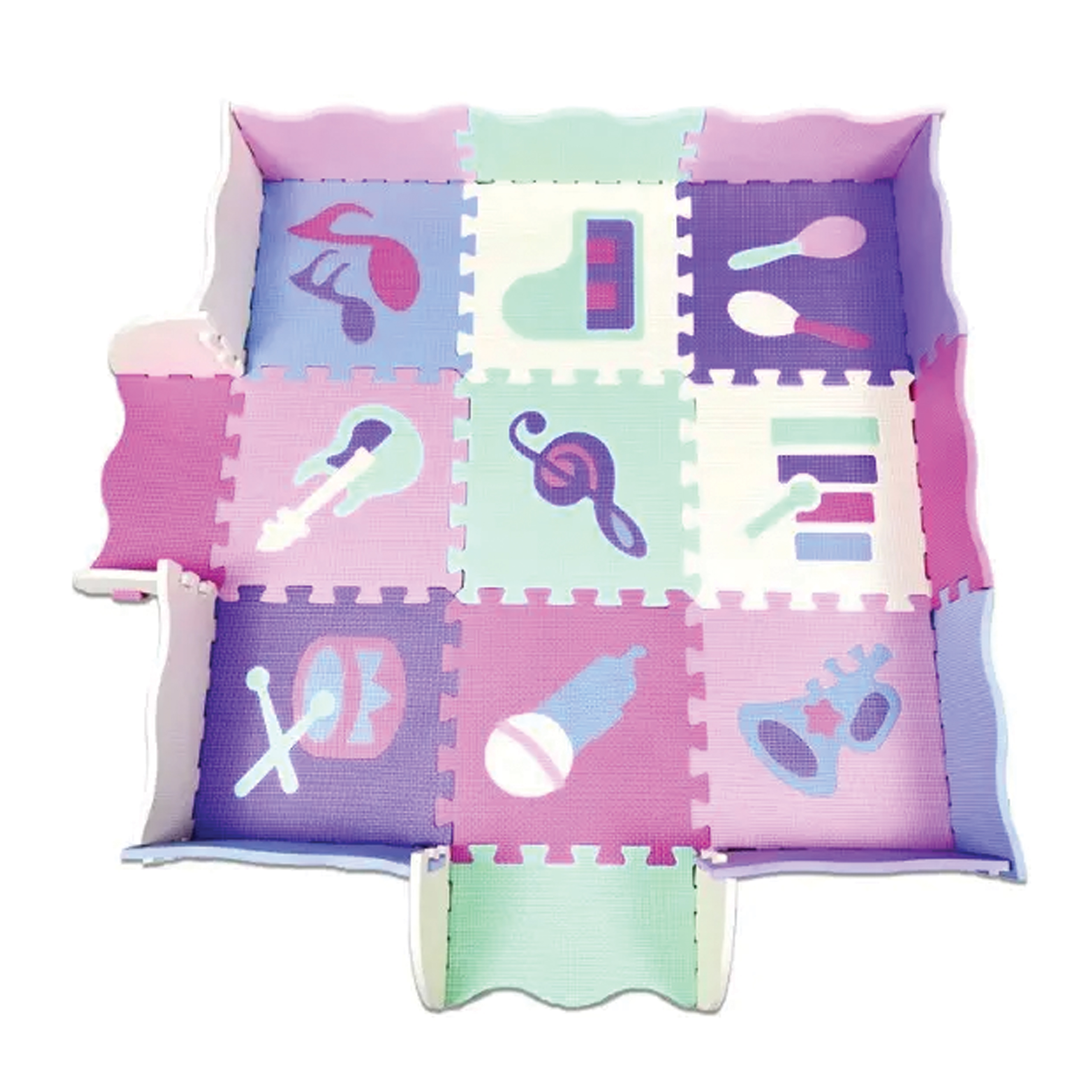 ✅ Liczba elementów: 25 w tym 9 sztuk puzzli z wzorami zwierząt i kształtów, 12 puzzli tworzących ściany oraz 4 narożniki
