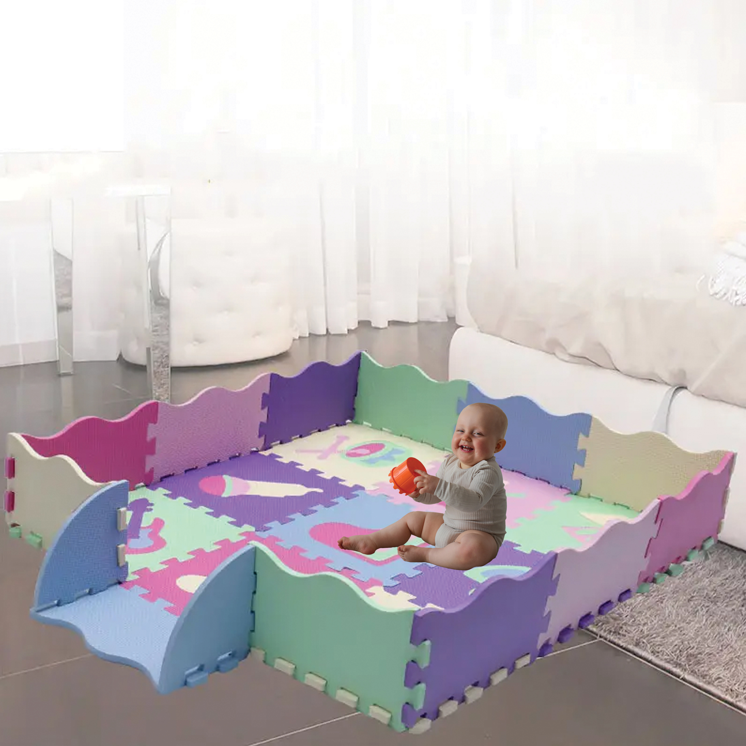 Mata piankowa została stworzona z myślą o maluchach, aby miały bezpieczną i wygodną przestrzeń do zabawy. Jest to produkt wielofunkcyjny – pełni również rolę kojca i puzzli 3D.