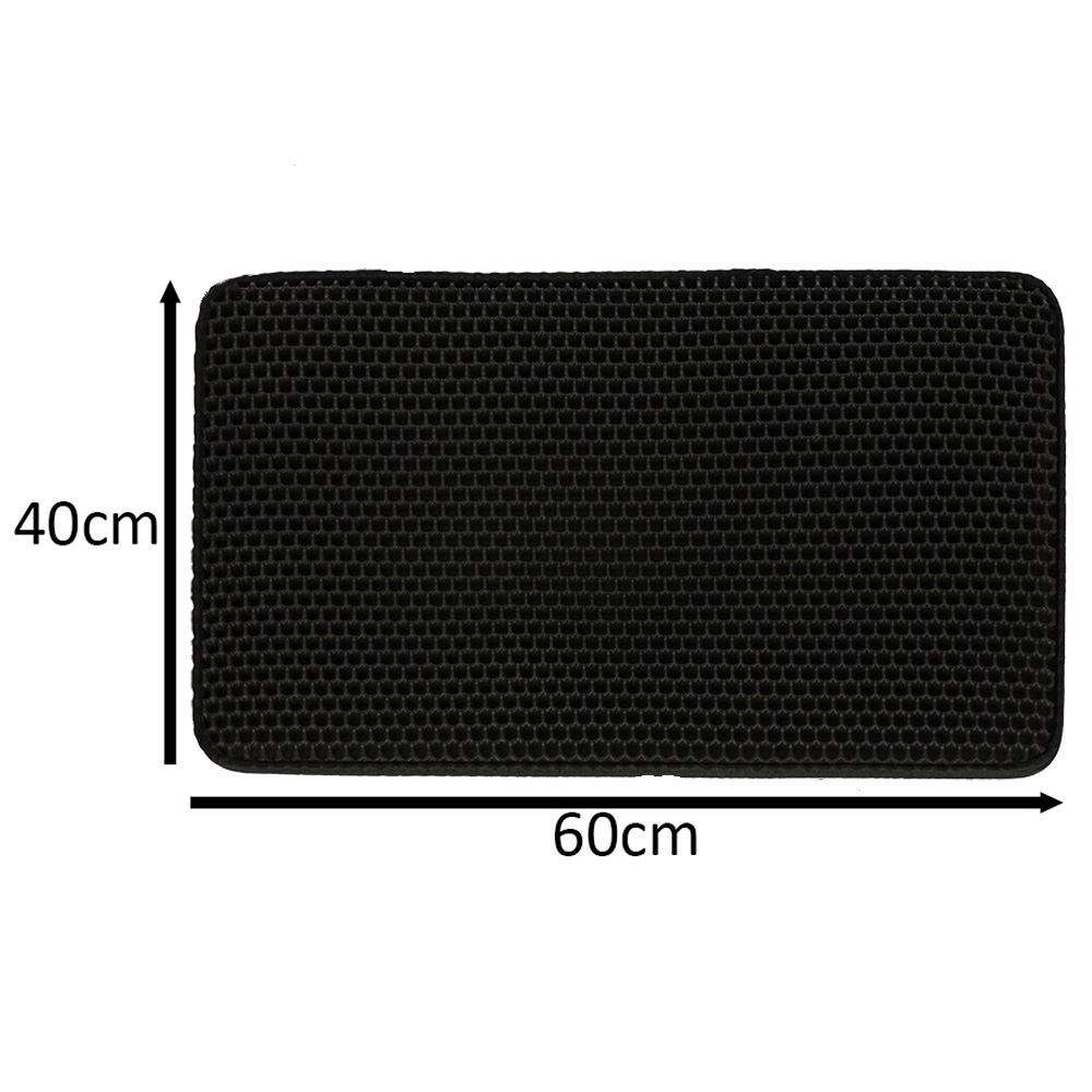 Wodoodporna, dwuwarstwowa mata pod kocią kuwetę – koniec z rozsypanym żwirkiem po całym domie. Dwuwarstwowa konstrukcja maty będzie łapać resztki żwirku z kocich łapak i zapobiegać jego dalszemu roznoszeniu się. Tworzywo: materiał EVA. Wym.: 60x40x1 cm.