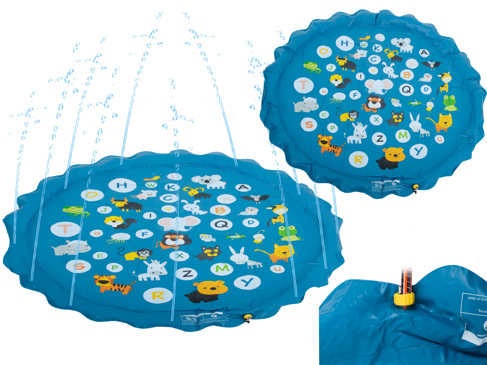 Rewelacyjna fontanna ogrodowa. Idealnie sprawdzi się w przydomowym ogródku. Ciekawy wzór zwierzątek i alfabetu zachęcą malucha do zabawy. Wystarczy podłączyć matę do węża ogrodowego, by strumienie wody mogły zapewnić ochłodzenie. Śr. fontanny: 170cm.
