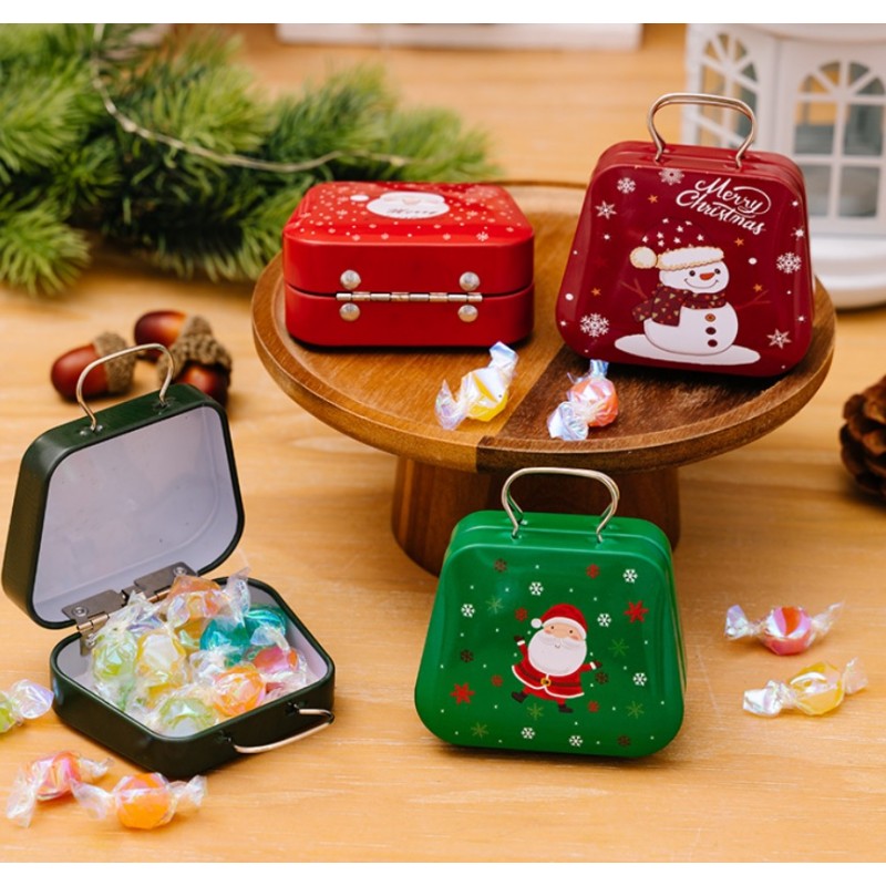 Metalowy pojemnik z uchwytem na cukierki czerwony z Mikołajem 7cmx5,5cm KSN163