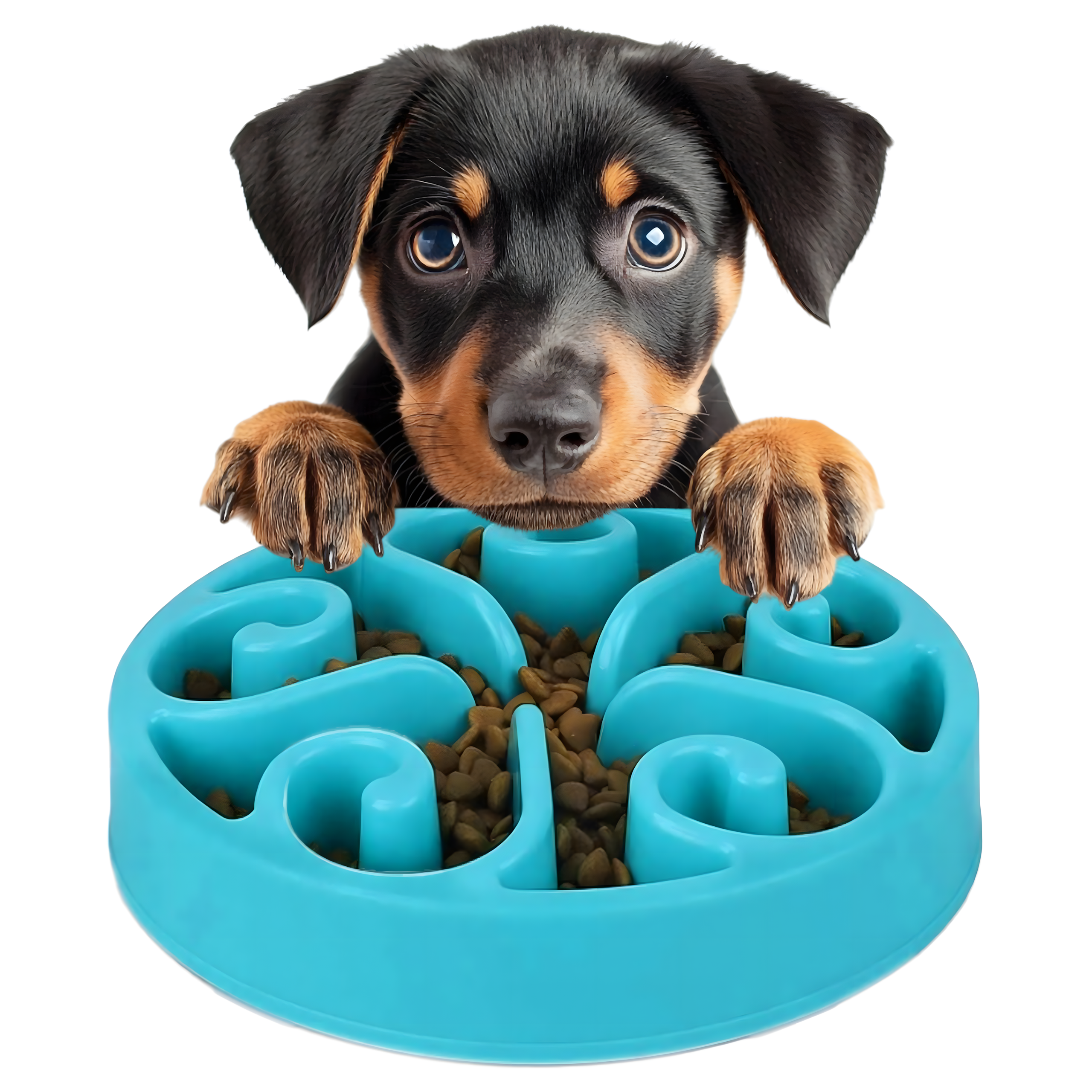 Specjalna miska spowalniająca dla psa lub kota. Miski zawierające przegrody w postaci labiryntów spowalniają jedzenie pokarmu przez psy, poprzez zmniejszenie jednorazowo połykanej porcji. Wydłużenie posiłku wpływa pozytywnie na trawienie oraz redukuje ryzyko wystąpienie otyłości.